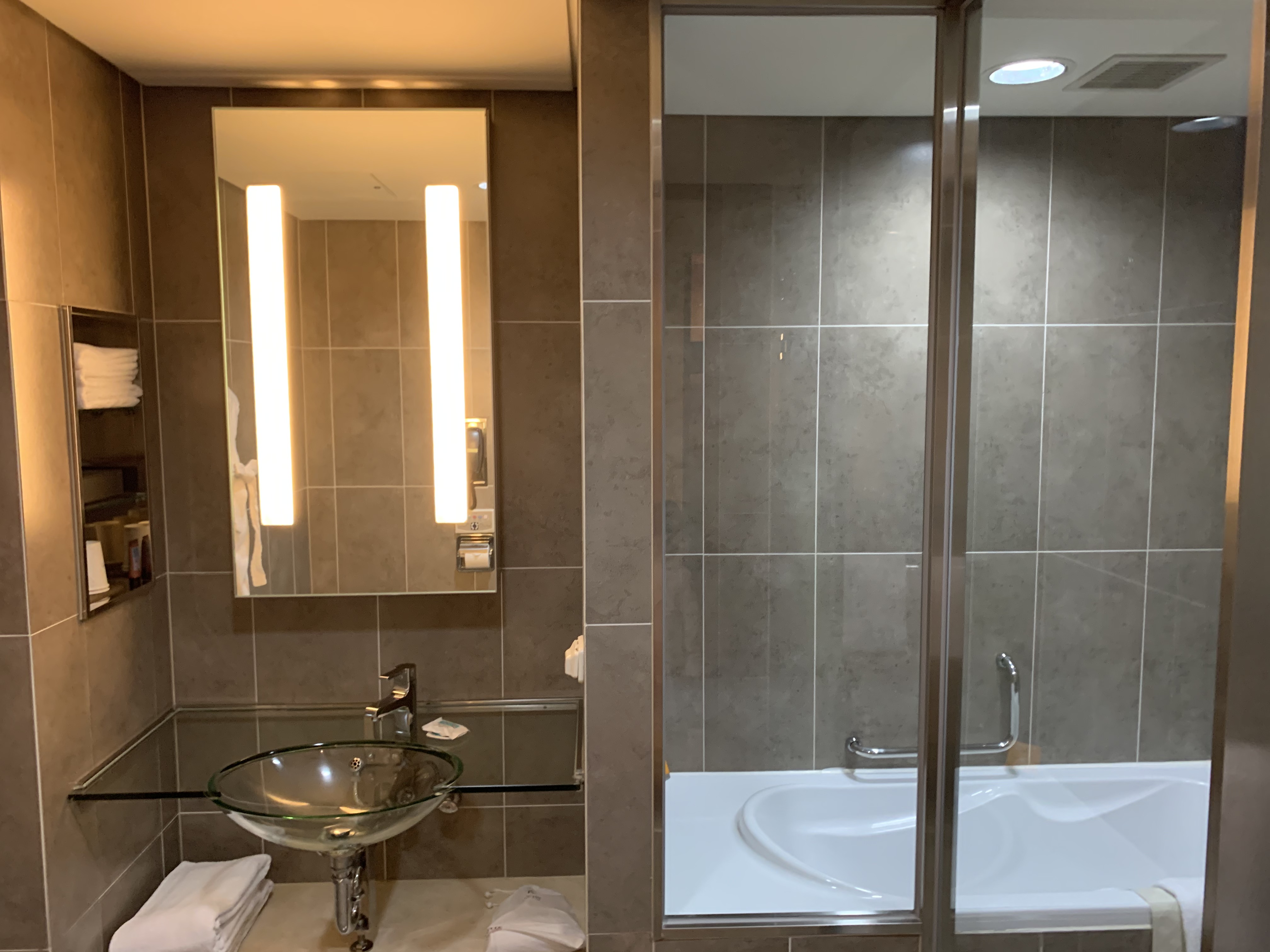 예약 정보에서 말씀드린 대로 디럭스 트윈베드 룸을 예약하였습니다. 침대가 두 개 있으니 확실히 좋네요. 아이들 둘이서 한침대에서 자고 아내와 제가 같이 자면 딱 좋을 것 같습니다. 화장실도 샤워실과 욕조, 세면대가 분리되어 있고 청소 상태나 수건 등 전반적인 룸 컨디션이 상당히 좋습니다.
