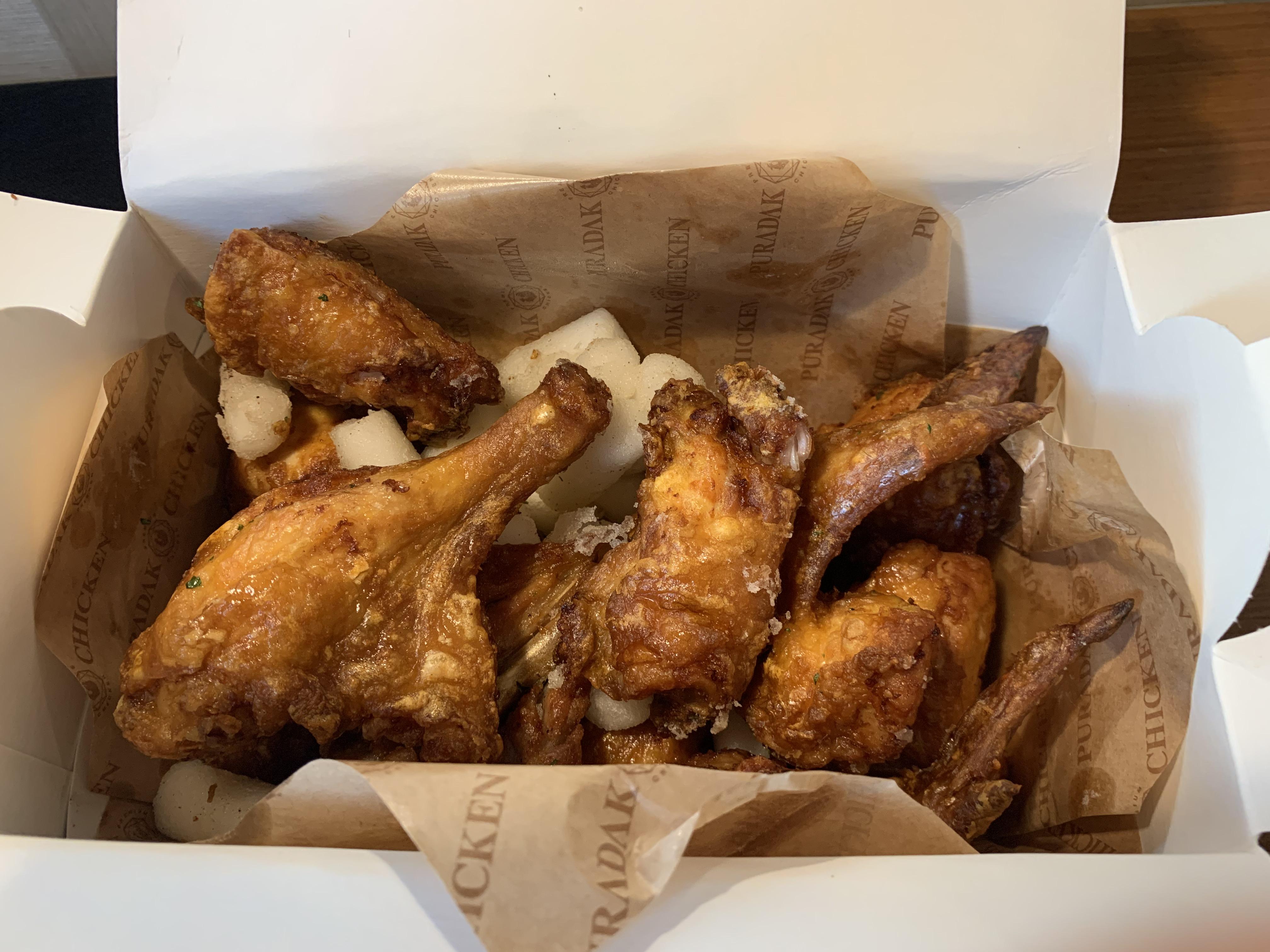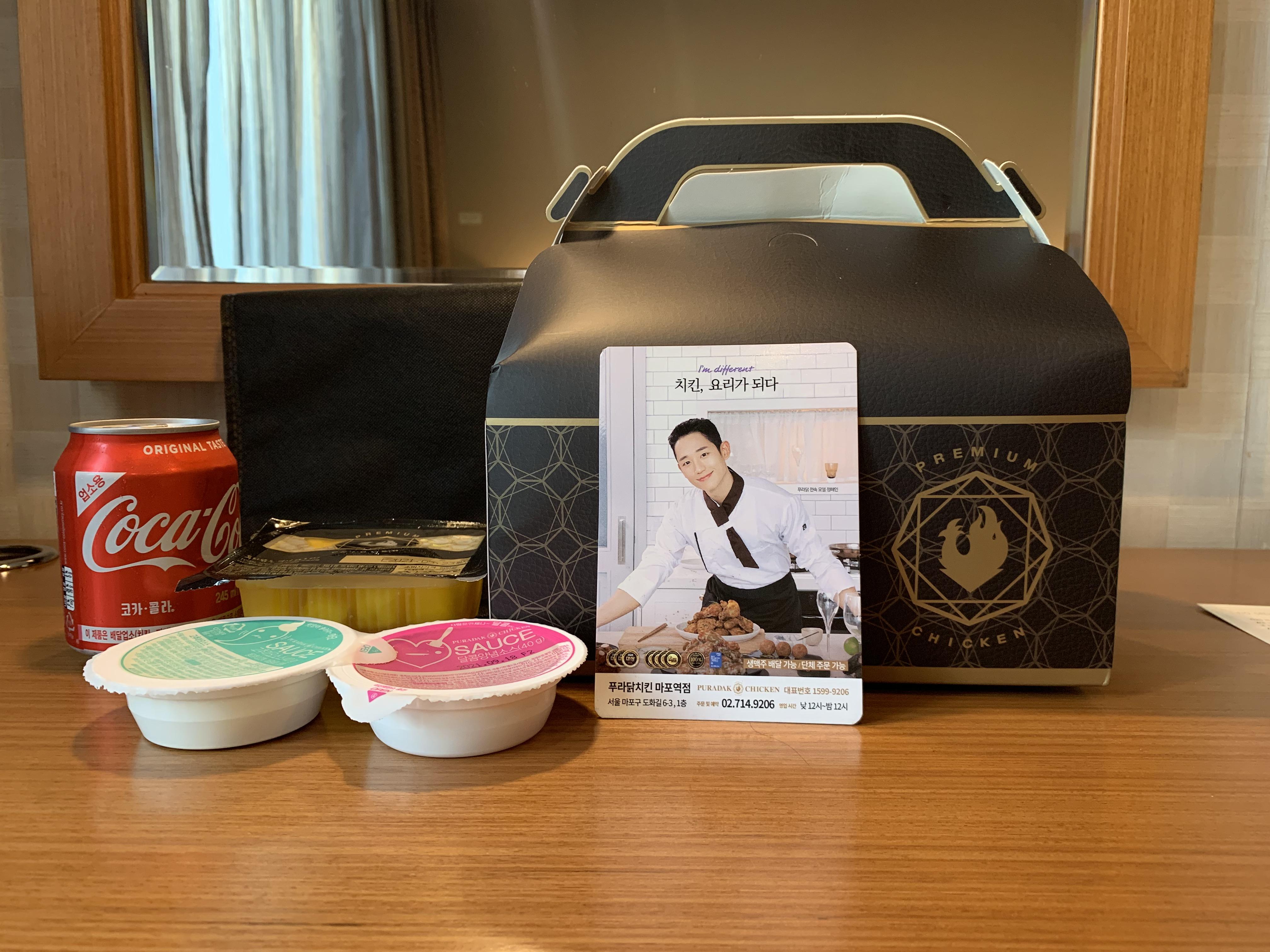꼭 조식이 아니어도 좋습니다. 여기가 어딥니까? 서울의 번화가 오브 번화가 공덕역 바로 앞입니다. 또한 이 건물 자체가 주상복합 건물로 지하 1층엔 롯데마트(편의점)가, 지하 2층엔 식당가가 있습니다. 수영 후 피곤하다면 어플을 이용하여 정문까지 배달을 시키면 됩니다. 저희 경우에도 수영 후 샤워를 마치고 나가기가 번거롭고 피곤하여 프라닭을 시켜 먹었습니다. 수영 후 먹는 치킨은 맛이 또 다르네요 정말 맛있게 먹었습니다.