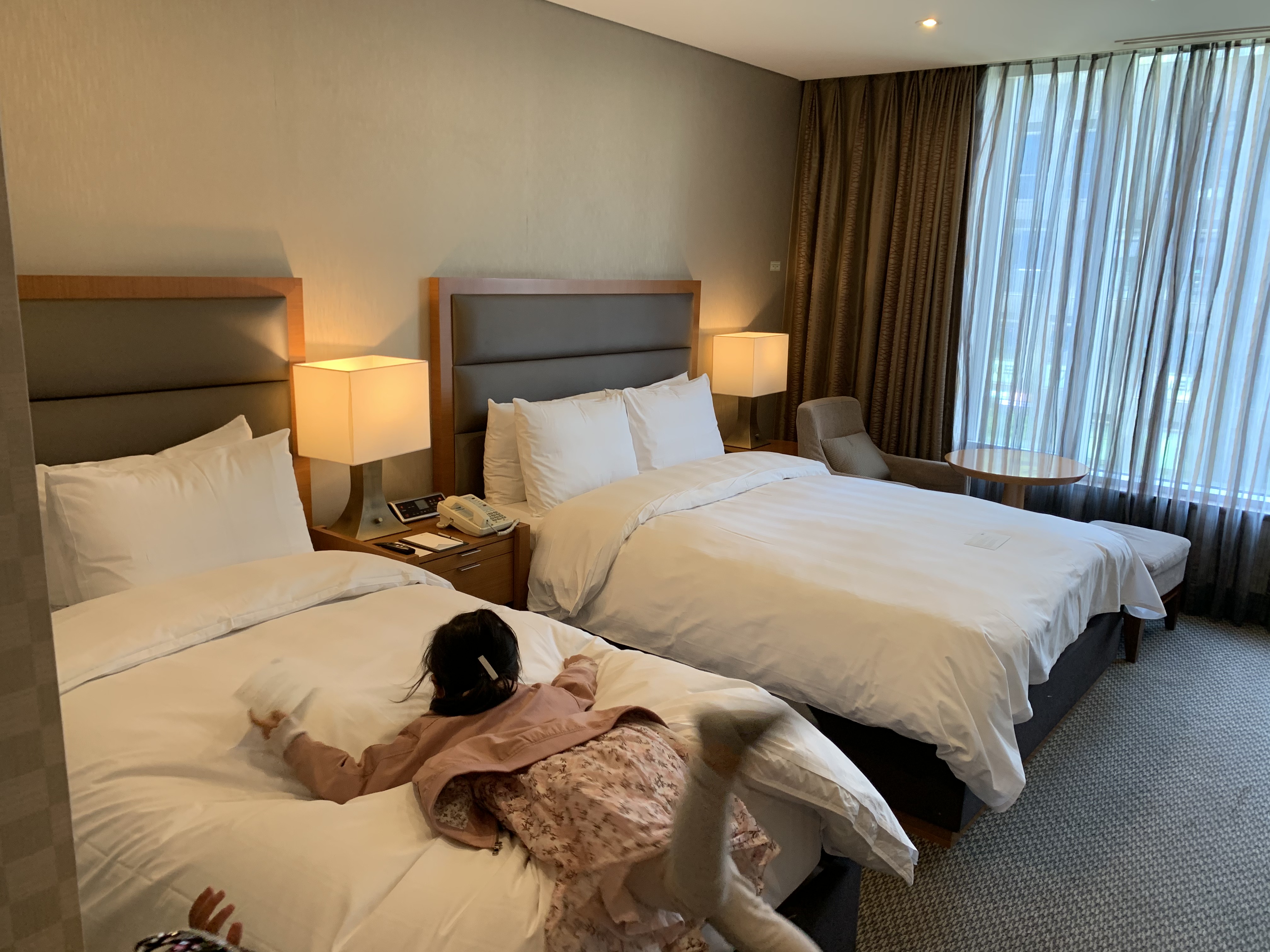 토~일로 일정을 짤 수도 있었지만 왠지 사람이 붐빌 같아서 일부러 한산할 것 같은 일~월로 계획했고, 아이가 두 명이다 보니 큰 침대 하나보다는 작은 거 두 개가 더 효율적이어서 디럭스 트윈룸으로 선택했습니다. 또한 아이들과 조식보다는 샌드위치로 간단히 때우고 아침에 수영을 한번 더 하는 것이 호텔을 제대로 즐기는 것이라는 생각이 들어서 레이트 체크아웃까지 옵션으로 택했습니다. 이번에 다녀왔을 때 가격부터 시설까지 정말 만족한 터라 다음에 또 가더라도 똑같이 다녀올 것 같습니다.