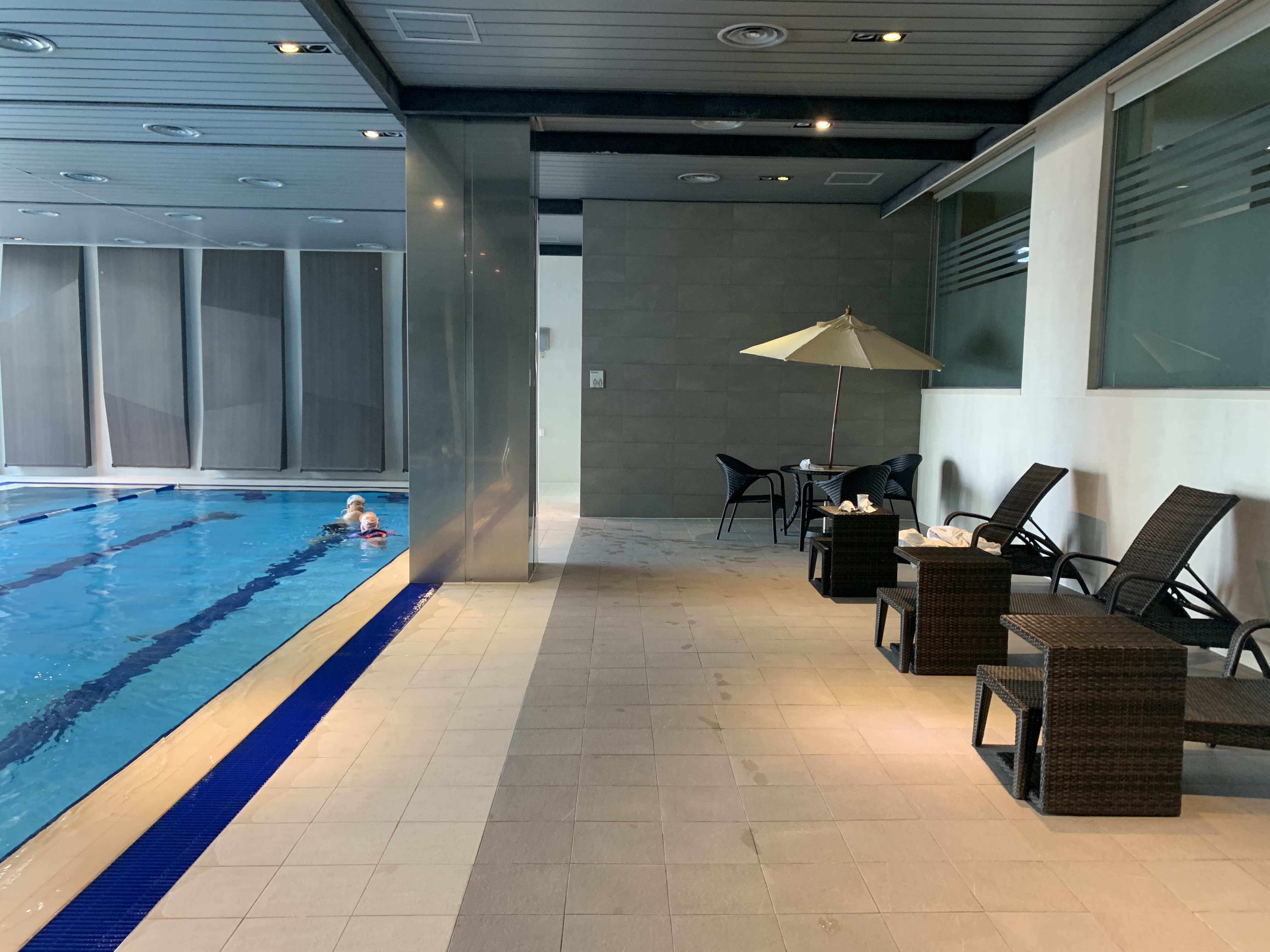 서두에서 말씀드린 대로 이 호텔에 온 이유 중의 하나가 바로 수영장이었습니다. 4인 가족이 저렴한 가격에 서울 번화가에서 호텔에 머물며 수영장까지 이용할 수 있는 곳이 얼마나 될지 모르겠습니다. 수영장을 이용할 때는 필수로 QR체크인(서명부도 있음)을 해야 하고 입구까지는 마스크를 착용하여 방역수칙을 지켜야 합니다. 수영장 내에서도 물에 들어갈 때를 제외하고는 마스크를 착용하여야 합니다. 저희가 이용했을 때는 저희 가족을 제외하고 2~3팀이 같이 수영을 하고 있어서 행여나 불편하실 수도 있을 것 같다는 생각에 저희 가족만 나온 사진 한두 장을 제외하고는 사진을 찍지는 못했습니다.