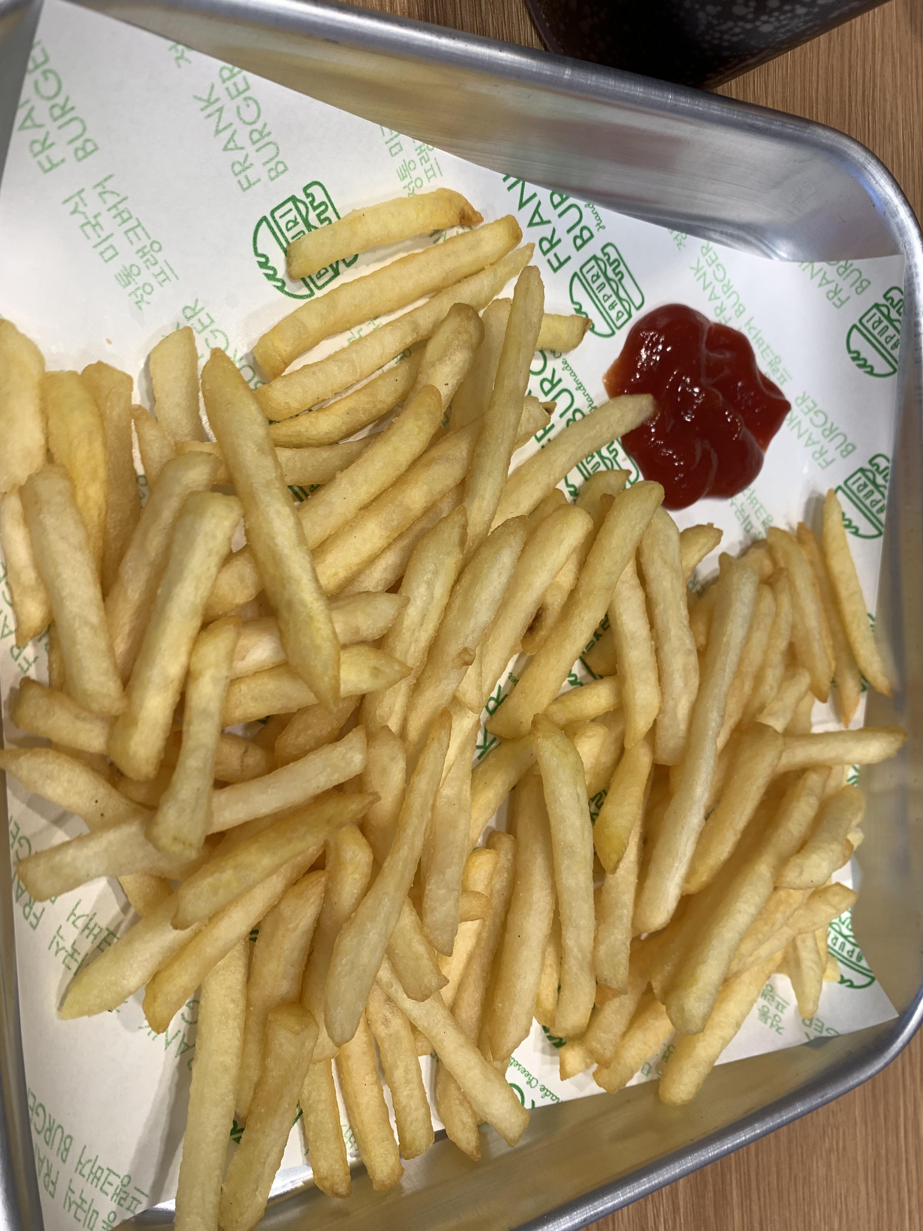 위에 패티가 푸짐해 보이시죠? 후렌치프라이도 쫀득하다고 해야 하나? 하하 다 먹으니 정말 배부르네요.