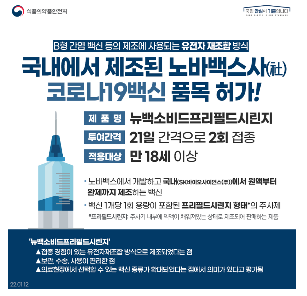 이전 포스팅에서는 노바백스社 와 접종효과, 부작용 등에 대해서는 알아보았었는데요. 이번에는 제품의 승인, 정식 명칭으로 품목허가의 개요와 허가심사 진행 경과 등에 대해 자세하게 살펴보도록 하겠습니다.