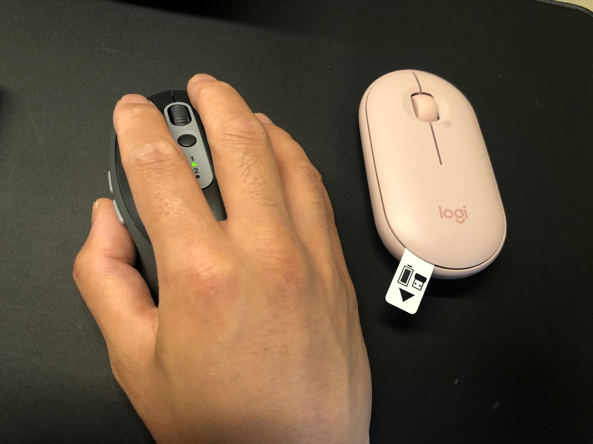 M590이 묵직한 조약돌을 잡고 있는 느낌이라면, M350은 손바닥을 마우스패드에 붙이고 움직이는 느낌이었습니다. 조급 과장하자면 마우스가 있는 듯 없는 듯하게 그냥 손바닥을 패드에 올려놓았는데 그사이에 마우스가 있는 느낌이었습니다. 마우스를 사용하게 되면 주로 클릭하는 두 손가락, 즉 검지와 중기는 약간 세워서 마우스를 잡고 있는데 이 마우스를 사용하면 세운다는 느낌보다 그냥 손가락을 얹혀놓는다는 느낌이 더 강하게 듭니다. 처음 사용하시는 분들은 살짝 적응이 필요할 것 같으나 크기와 느낌에 적응할 시간이 많이 필요하진 않은 것 같고 저처럼 엄지손가락 스위치나 휠 스위치를 자주 이용하시는 분들께서 자주 그쪽에 손가락이 가는 게 조금 적응이 걸릴 것 같습니다.