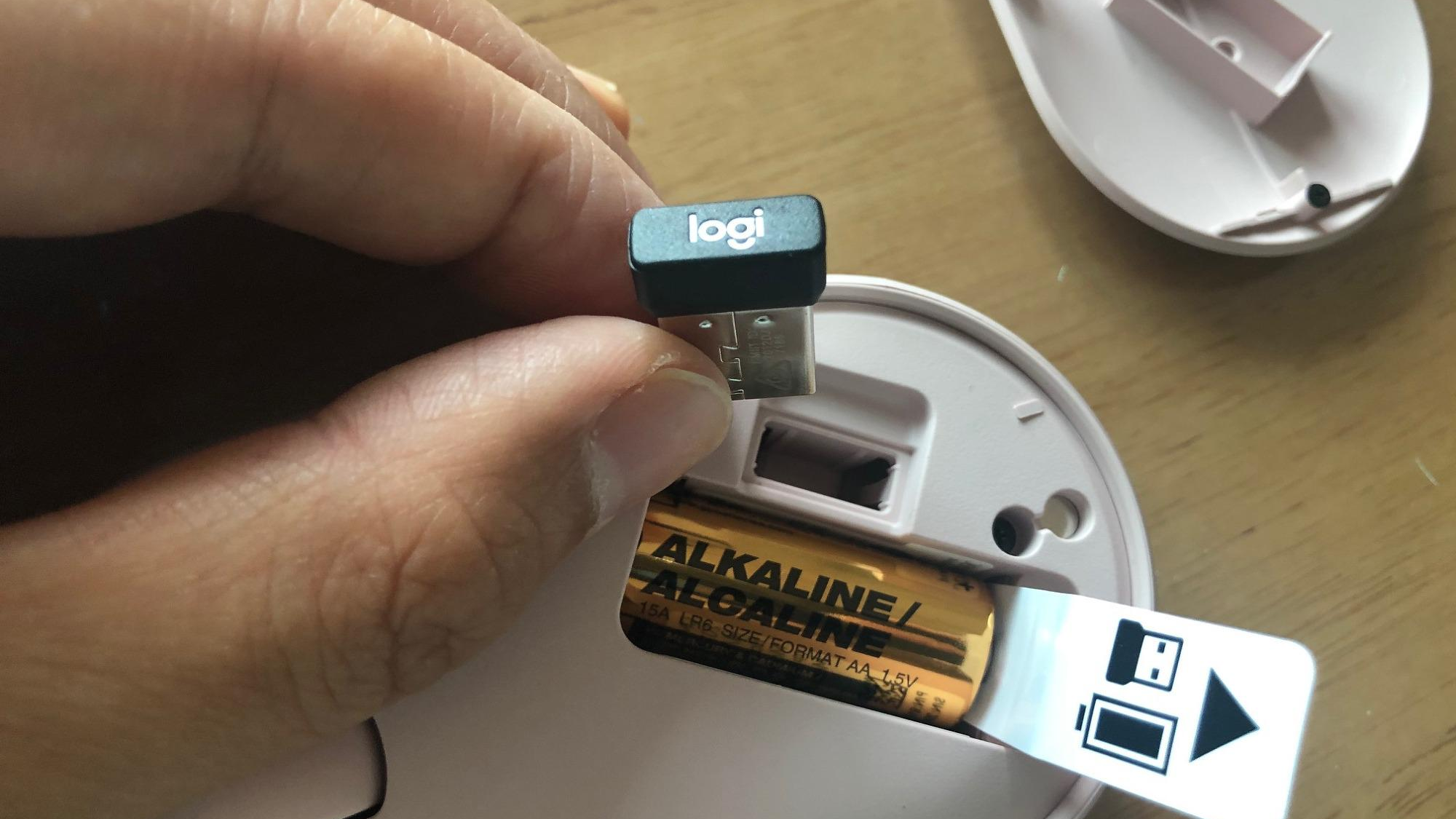 콤팩트 한 마우스답게 배터리와 동글 USB가 하부에 있는 것이 아니라 상부를 뚜껑처럼 열면 있었습니다. 여는 것도 자석으로 되어있어 여는 중 플라스틱이 손상되거나 하지 않아서 오래 사용할 수 있을 것 같습니다.