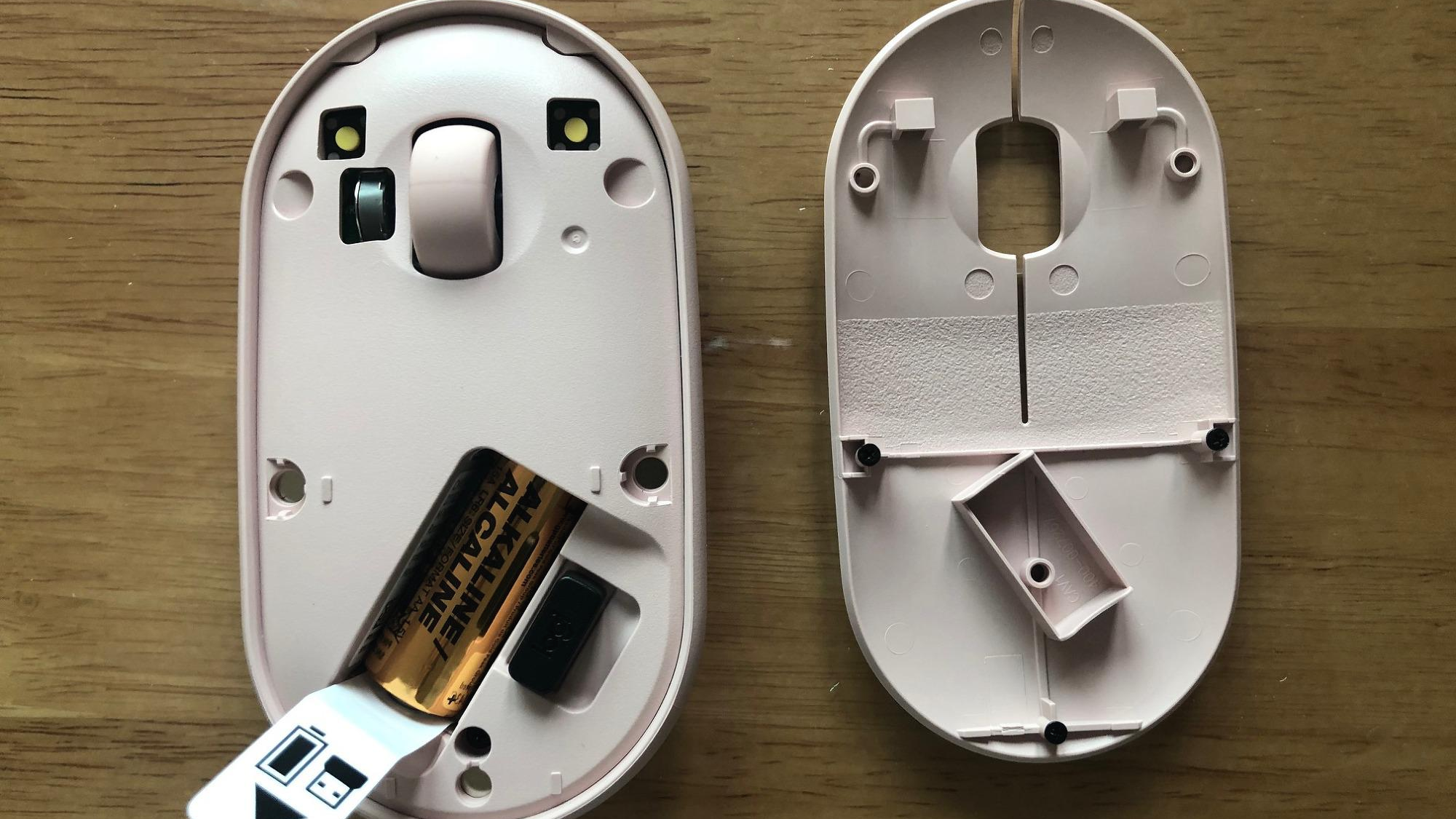 열어서 전반적인 만듦새를 확인해 보았습니다. 로지텍 마우스답게 작고 가볍지만 만듦새는 상당히 좋았습니다. 보통의 마우스보다 납작하게 디자인되어서 가방에 넣고 다닐 때 가방이 튀어나오지 않고 책이나 다른 물건에 눌려서 손상되는 일도 없을 것 같습니다.