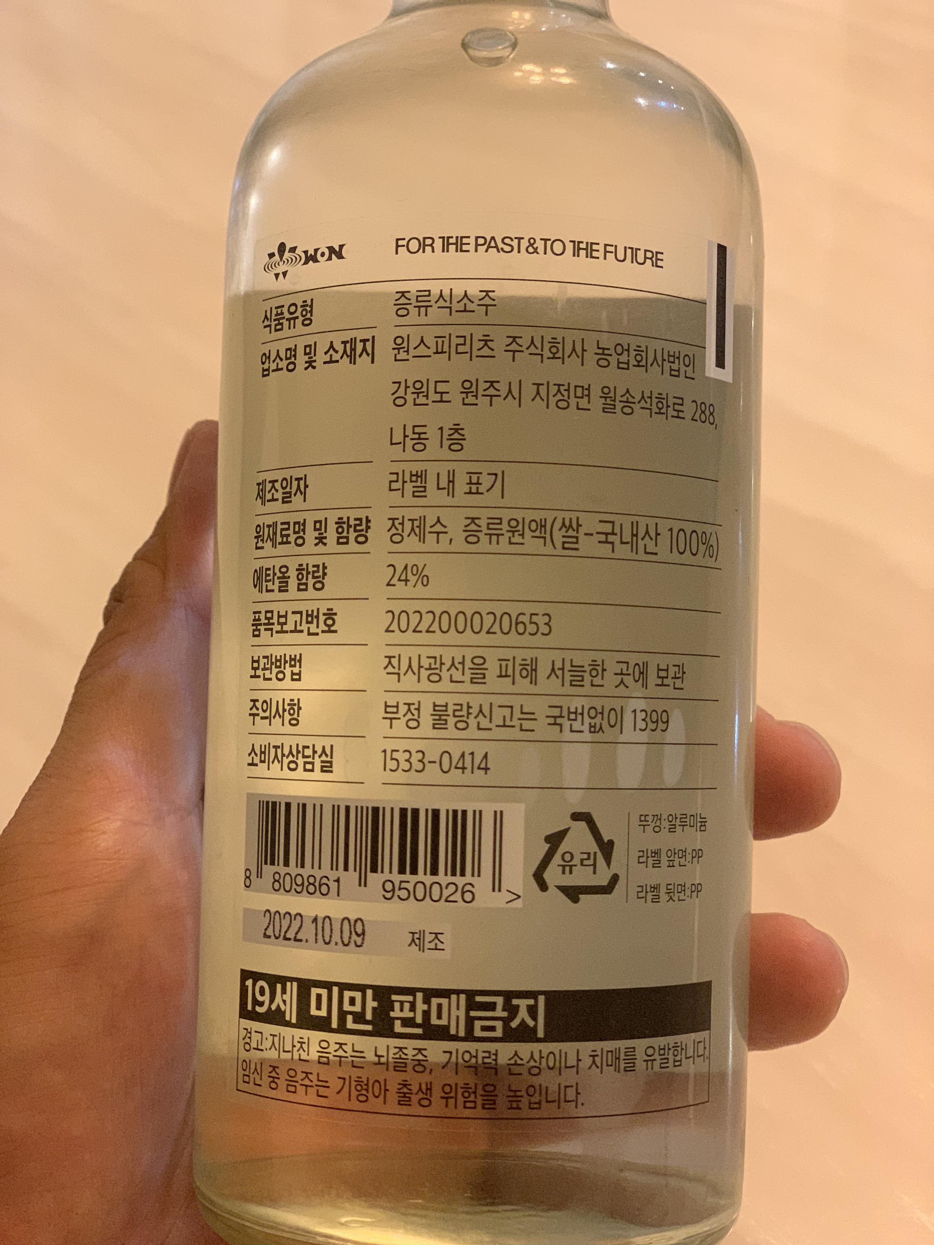 필자도 그간 원소주를 마셔보고 싶어서 동네 GS25 편의점을 엄청 돌아다녔던 거 같은데요. 드디어 어제 구매할 수 있었습니다. 원소주가 눈에 보이는 게 신기해서 마트 직원분께 이거 살 수 있는 거냐고 물어봤더니 가능하다고 하여 얼마나 기분이 좋았는지 모릅니다.