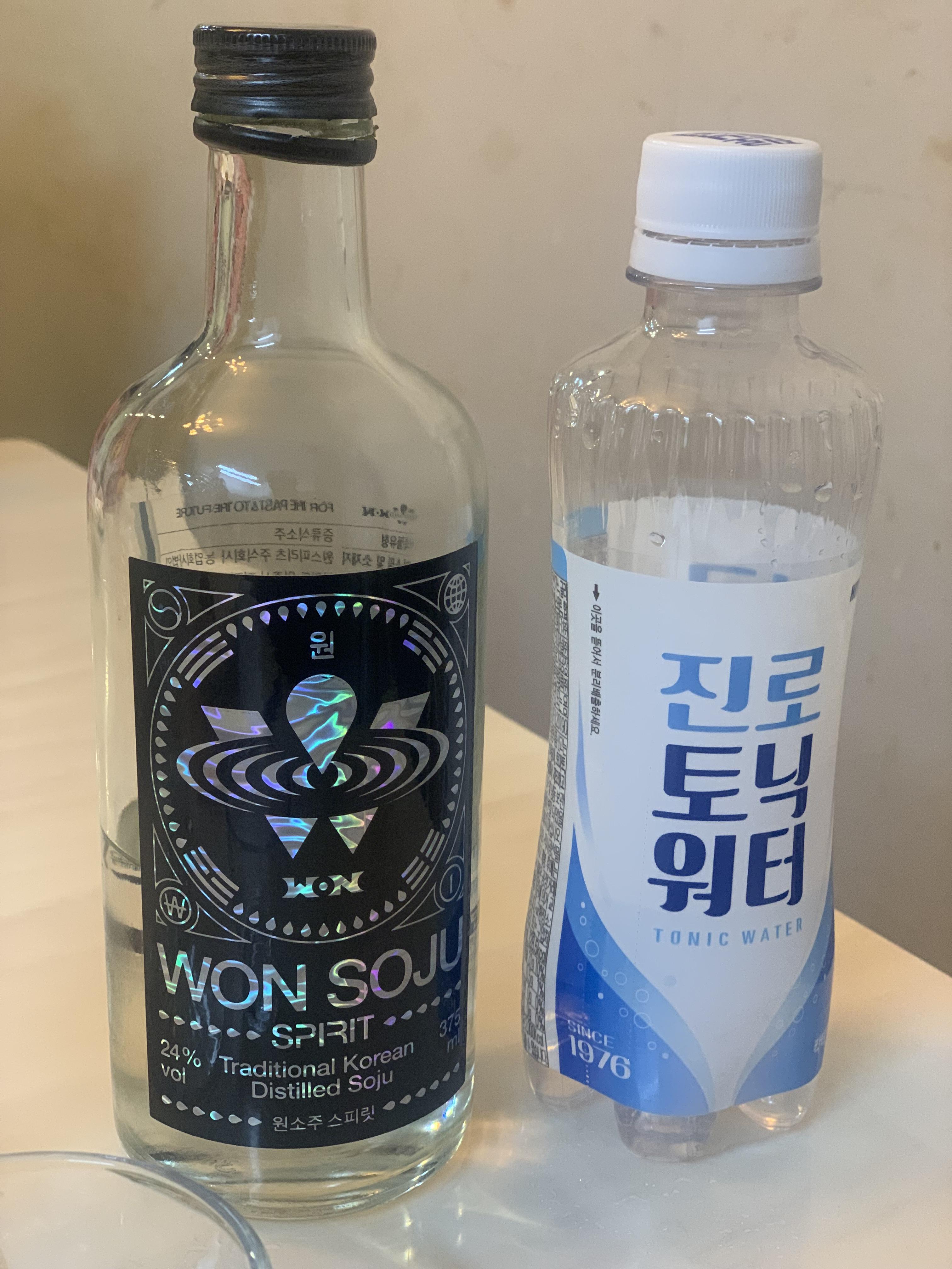토닉워터와 타서 먹어 보았는데요. 생각보다 그냥 먹는 것보다 훨씬 맛이 좋았습니다. 저는 일반 하이볼을 먹을 때도 위스키를 조금 더 넣는 걸 좋아하는 편인데 원소주와 토닉워터를 1 : 1 비율로 섞는 것이 베스트였습니다. 신기한 것 중에 하나는 하이볼을 만드니 증류주의 향이 더 강하게 나면서 목 넘김도 부드럽고 정말 맛있게 먹었습니다. 연속으로 4잔을 먹었더니 한 번에 취한 것은 비밀입니다!
