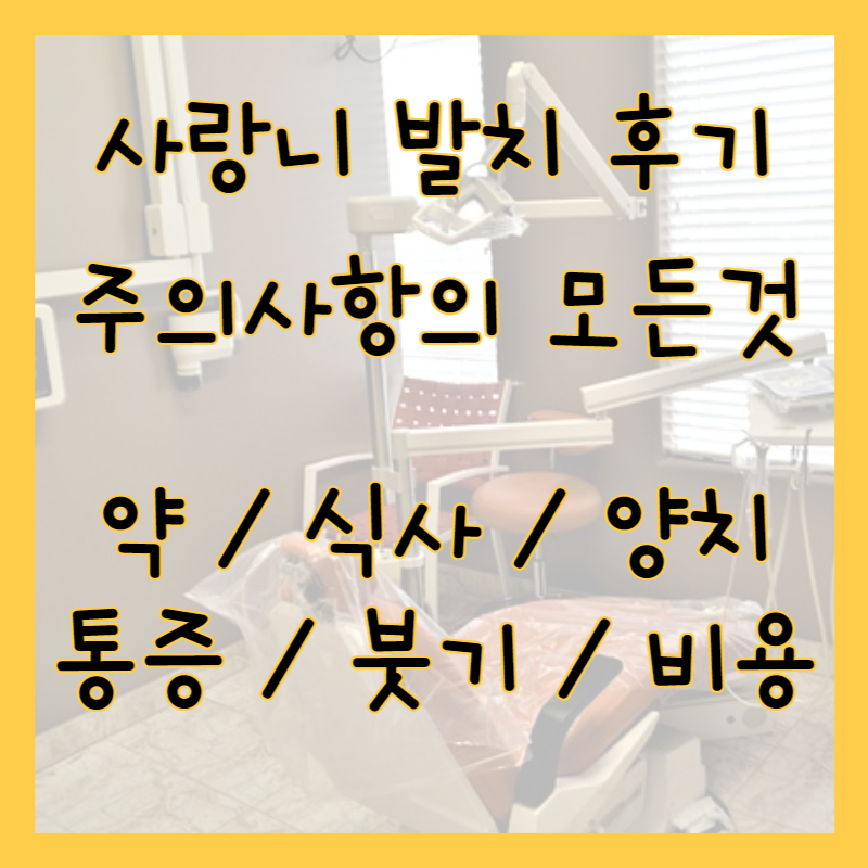 사랑니 쪽 잇몸이 붓고 염증이 생기셨나요? 살이 단단해지고 아픈 것만으로도 제대로 씹지도 못하고 냄새도 나서 일상생활에서 불편함이 많으셨죠? 그렇다고 사랑니를 뽑기엔 두려움이 앞서 치과로 발걸음이 잘 떨어지지 않더라고요. 이번 포스팅에서는 사랑니 발치 후기 및 주의사항의 모든 것에 대해 알아보도록 하겠습니다.