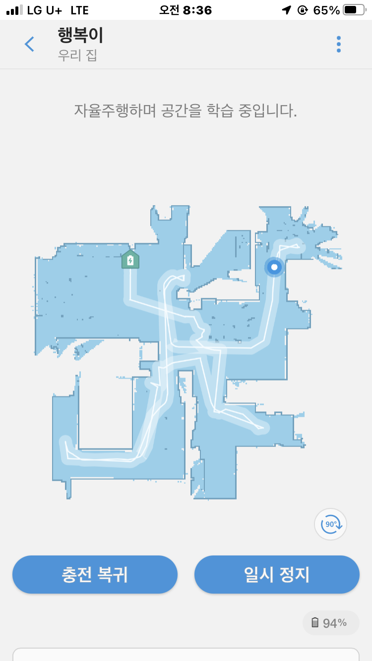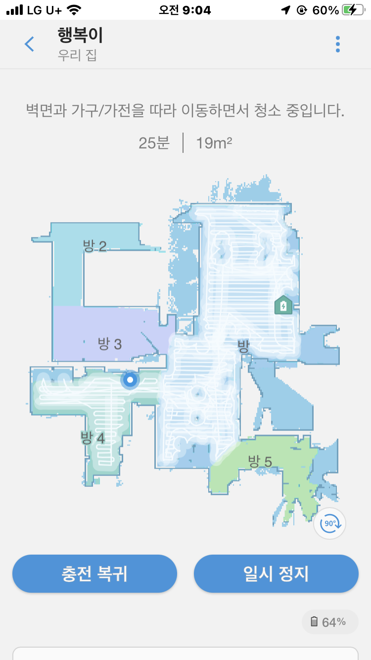 아래는 어플을 사용하여 청소한 모습입니다. 처음 사용해서 그런지 맵을 그리며 청소하네요. 문명의 힘은 대단합니다.
