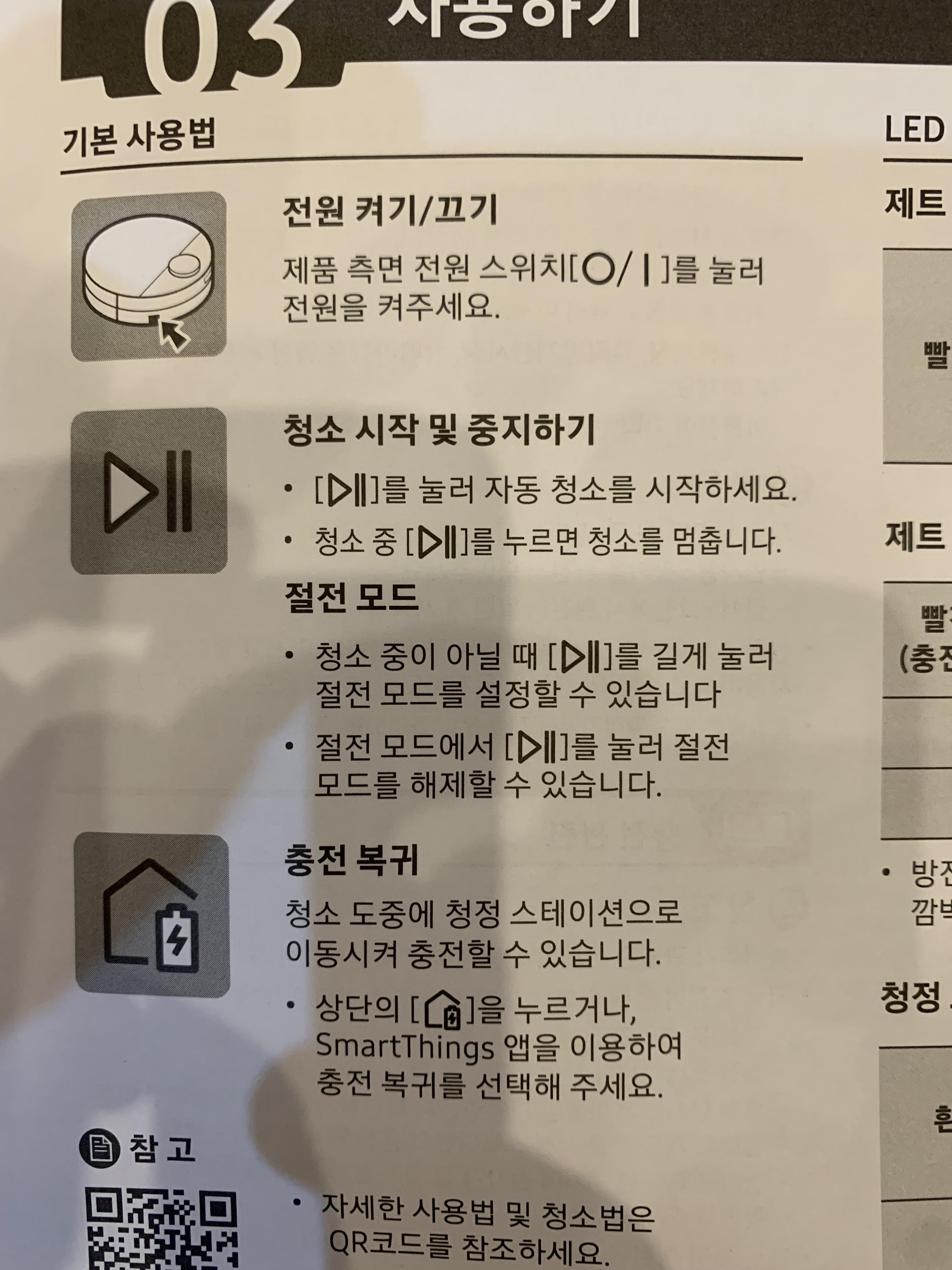 사용설명서는 무척 간단합니다. 아래 사용하기 설명서를 참고하시면 청소기를 간단히 이용할 수 있고, 혹 궁금하신 사항이 있으시면 QR코드를 이용하면 자세한 설명이 나오니 누구나 사용하실 수 있습니다.