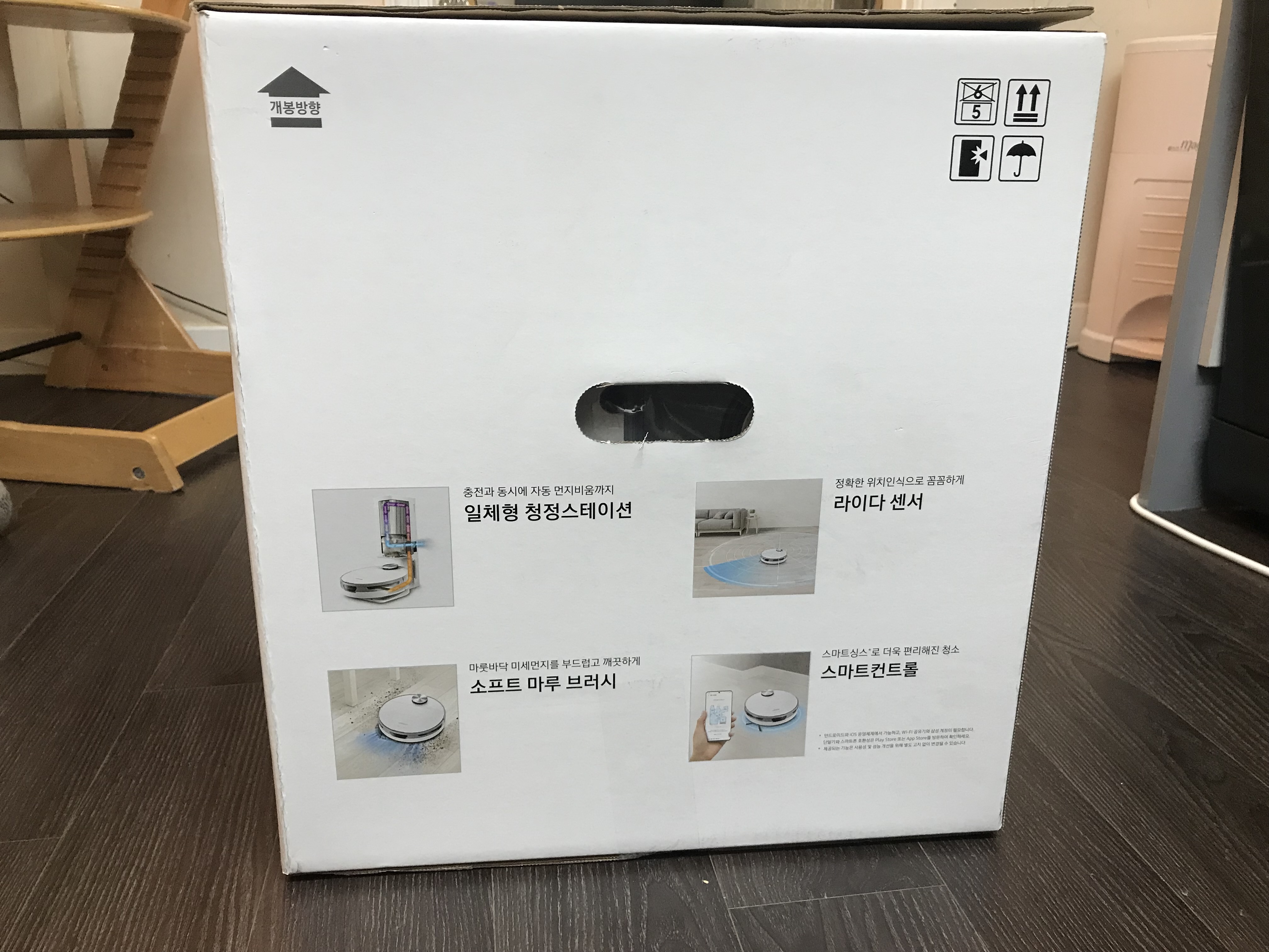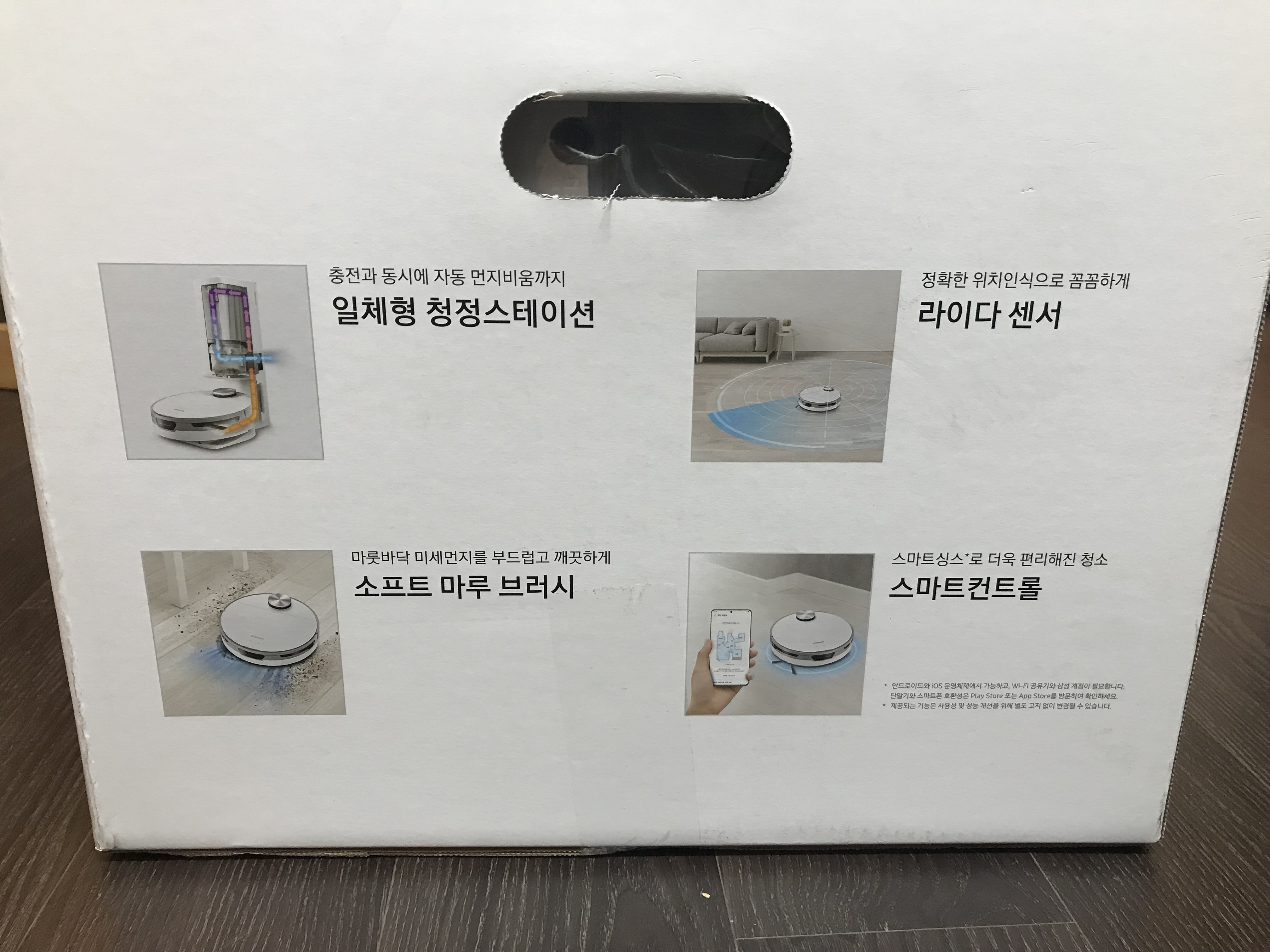 상자에 다양한 기능이 써져있는데요. 그것만 확인해도 삼성 청소기 로봇청소기 비스포크 제트봇의 99%의 기능은 안 것과 다름이 없습니다.