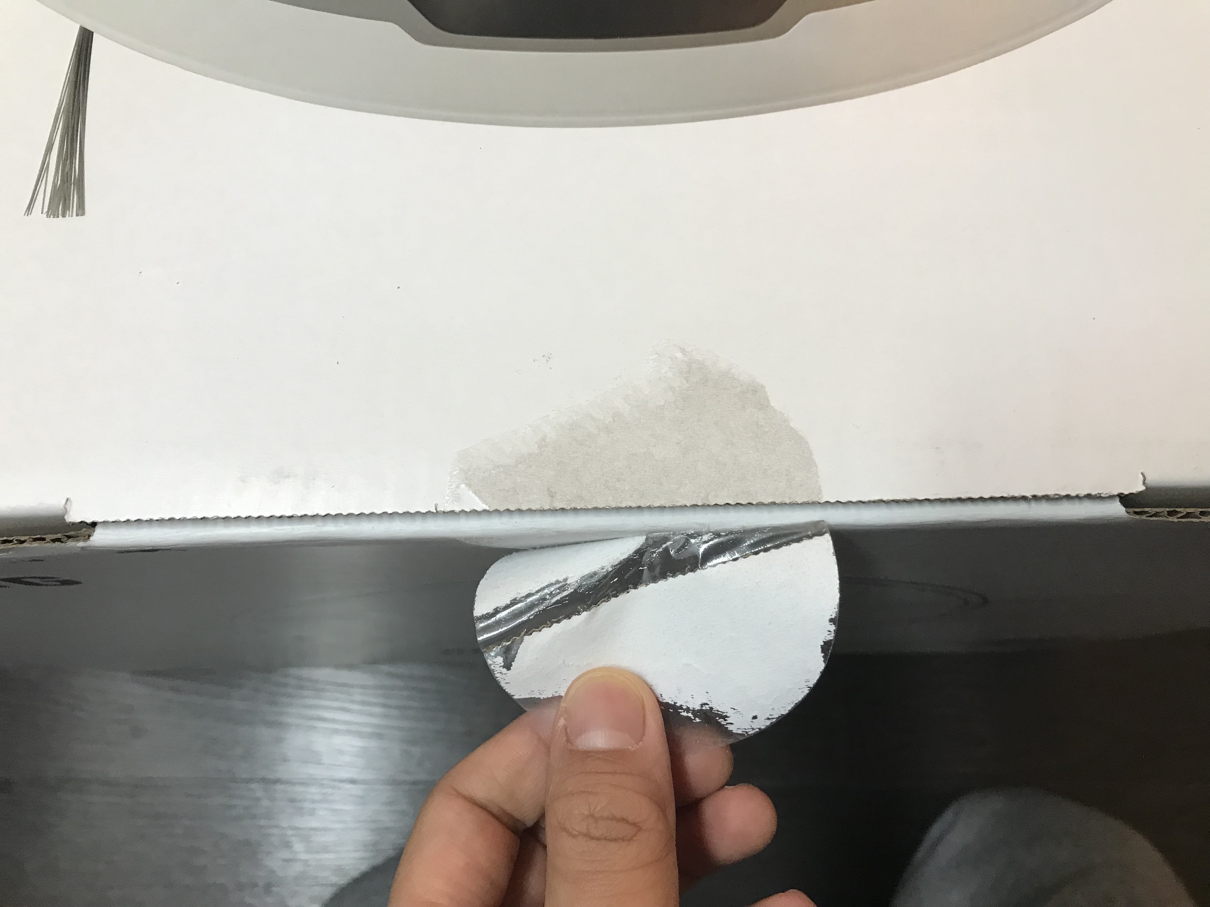 다음은 청소기 본체 세팅입니다. 청소기를 보면 스티커 제거 및 먼지통을 삽입하게끔 되어있습니다. 설명서에 나오는 데로 붙어있는 노란 스티커를 모두 제거하고 바닥부에 청소솔 보호 커버는 벗겨 줍니다.