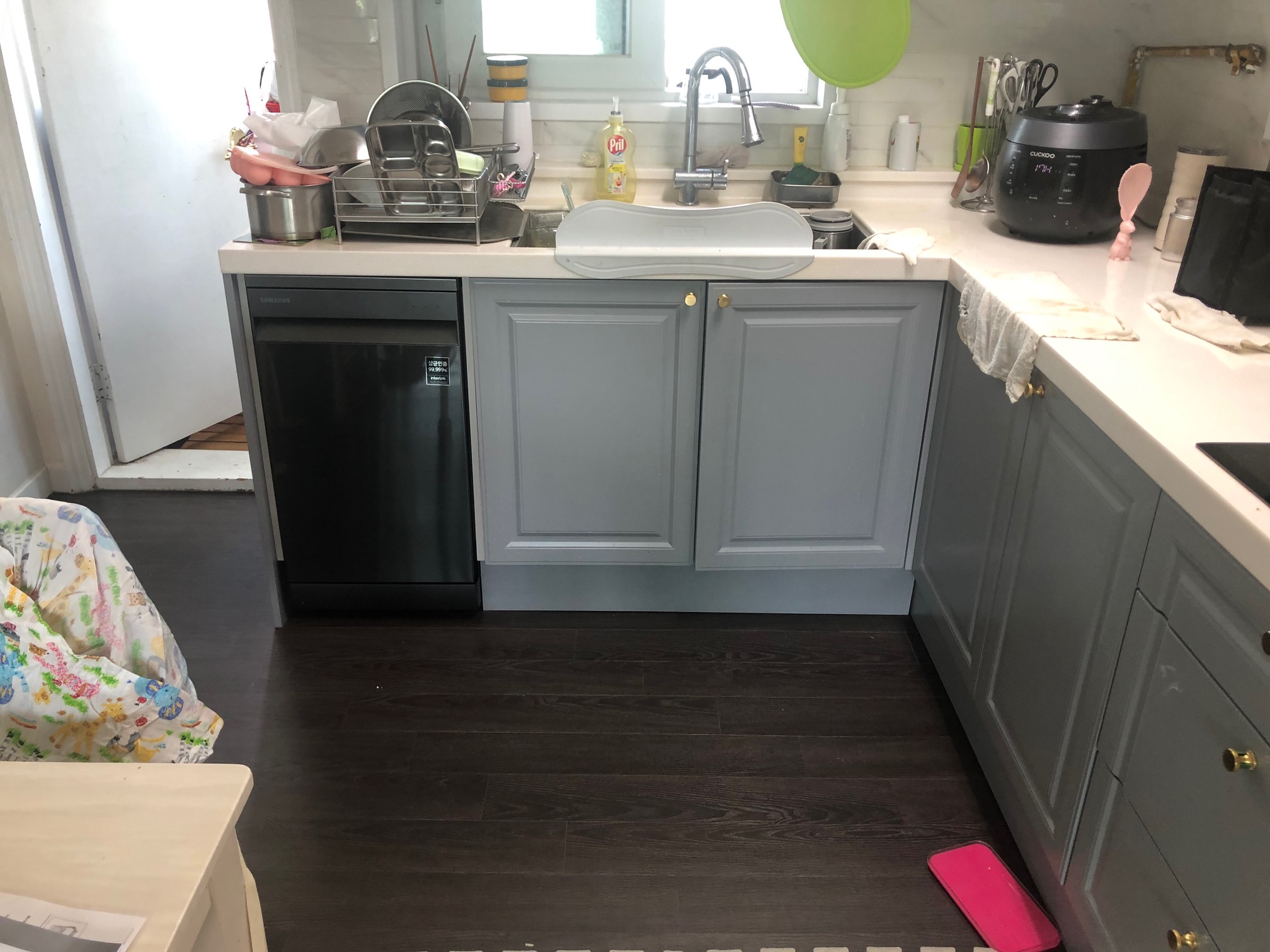 식세기를 알아보다 보니 빌트인일 경우 싱크대 리폼이 필수적이었다. 하지만 우리는 싱크대 리모델링을 한 지 2년밖에 안 되는 상황이었다. 우리 집 싱크대 하부장 한 칸의 넓이는 약 45㎝! 이것에 맞는 식세기가 있을 거야 하고 찾아보던 찰나 삼성 8인용 식기세척기가 보였고 우리 집과 맞춘 듯 사이즈가 딱이었다. 구매하고 나서도 설치 기사분이 오셔서 추가 요금 없이 한 칸만 빼면 될 것 같다고 하셔서 기분 좋게 설치할 수 있었다.