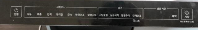 위의 메뉴를 보면 알겠지만 기능이 정말 많다. 표준 강력 유리잔 급속 헹굼 건조 열탕 소독 등등. 기본적으로 다양한 상황에 맞춰 사용할 수 있도록 편리하게 구성되어있다. 보통 90% 이상은 ( 표준+강력 건조 ) 기능으로 작동시킨다
