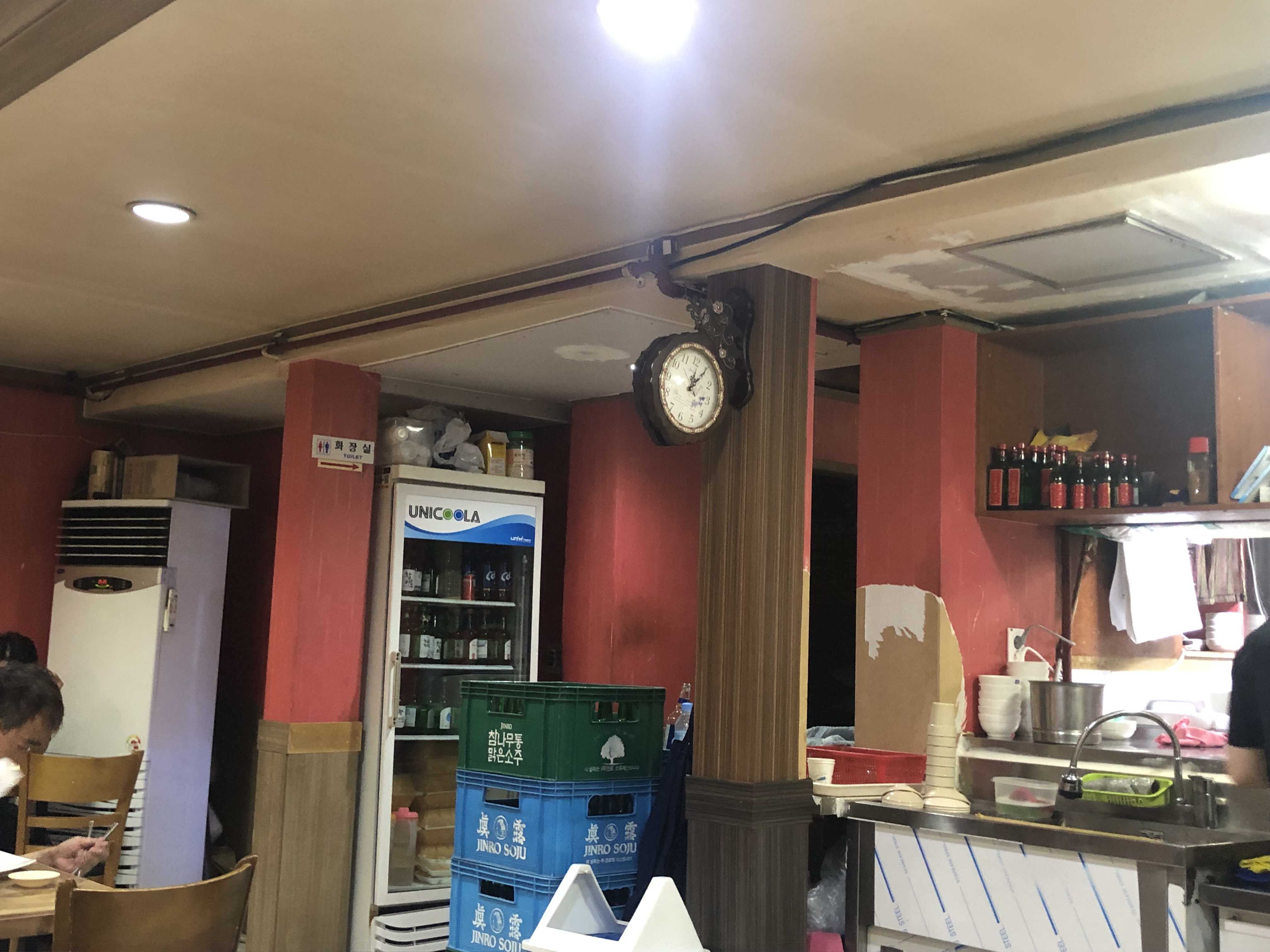 4인용 테이블이 약 20개 정도 되지만 점심시간이 되면 거의 다 찹니다. 주요 고객은 40 ~ 50대 어르신들입니다.