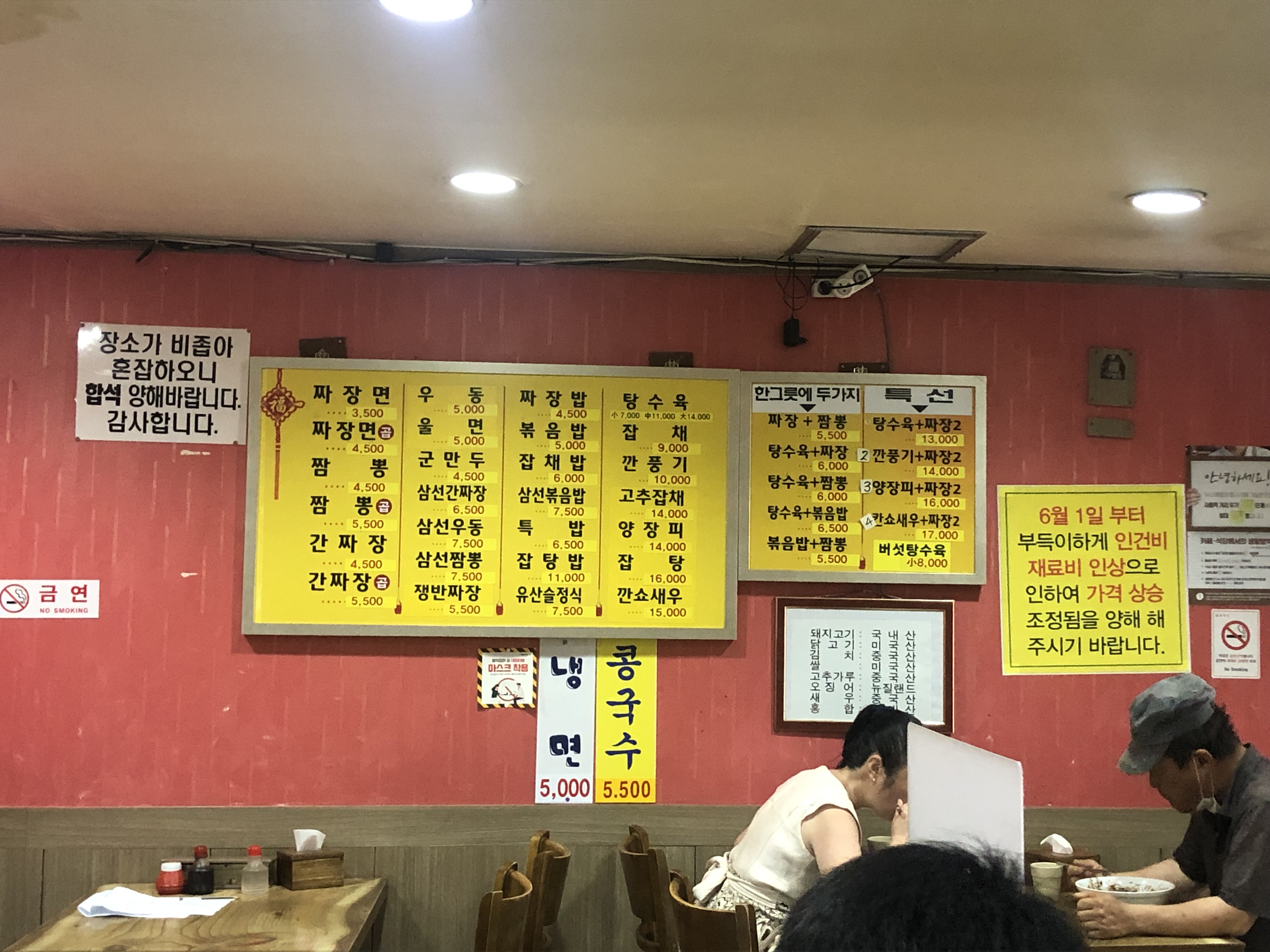 메뉴입니다. 가격이 보이십니까?? 그런데 이 가격도 2021년 6월 1일부터 500원씩 인상된 가격입니다. 짜장면이 한 그릇에 3,500원인 곳이 서울 시내 어디에 있을까요? 직장인 점심도 보통 7,000원 ~ 8,000원 사이이고 조금 맛있게 먹으려면 1만 원은 필수입니다. 이런 중국집 또 없습니다.