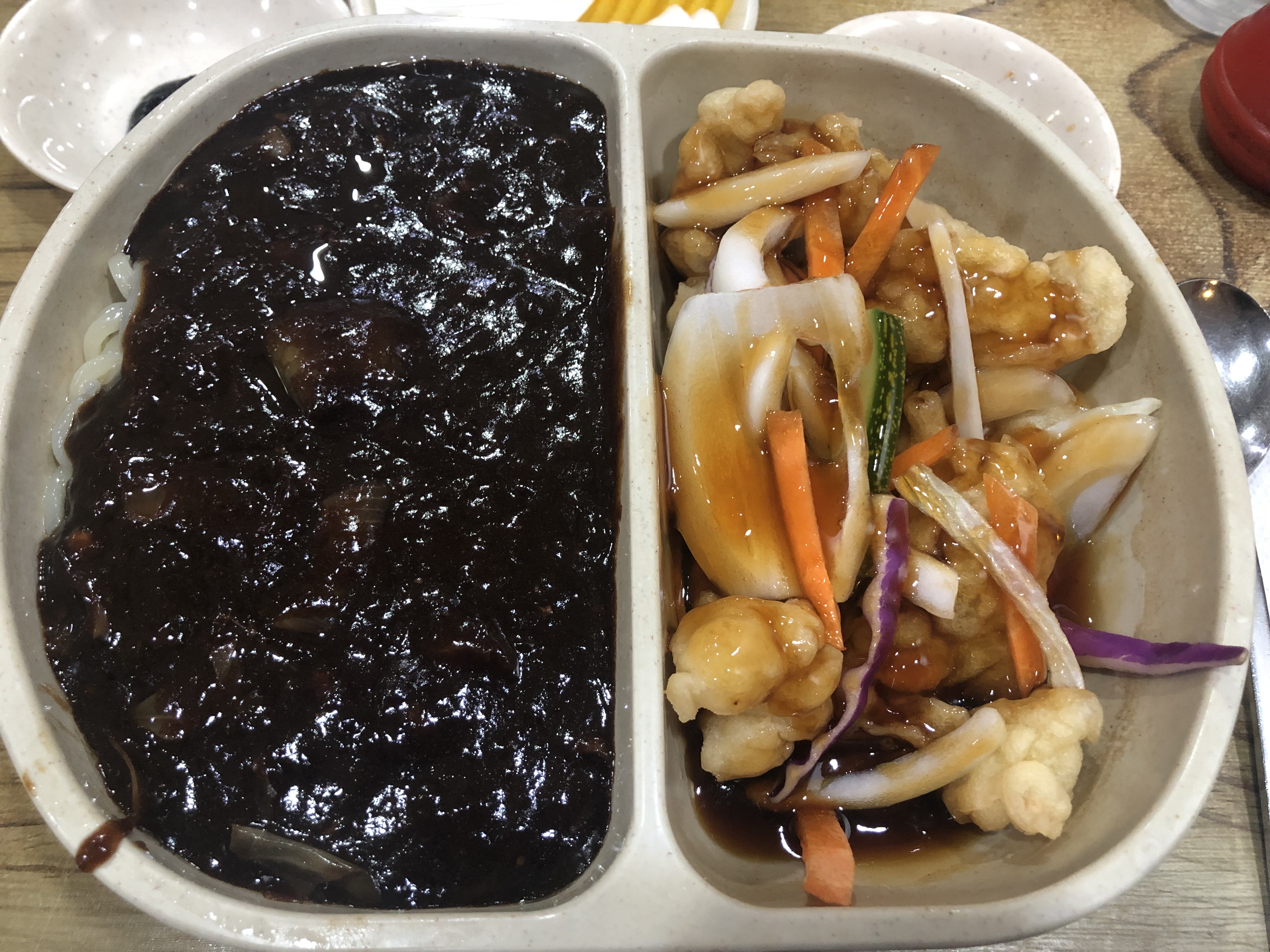 사실 이곳에 5~6번 정도 오면서 짜장면, 간짜장, 짬뽕, 볶음밥 등 하나씩 먹어 보았는데요. 오늘은 한 번도 먹어보지 못한 한 그릇에 두 가지 메뉴인 탕수육+짜장면 (6,000원)을 시켜보았습니다.
