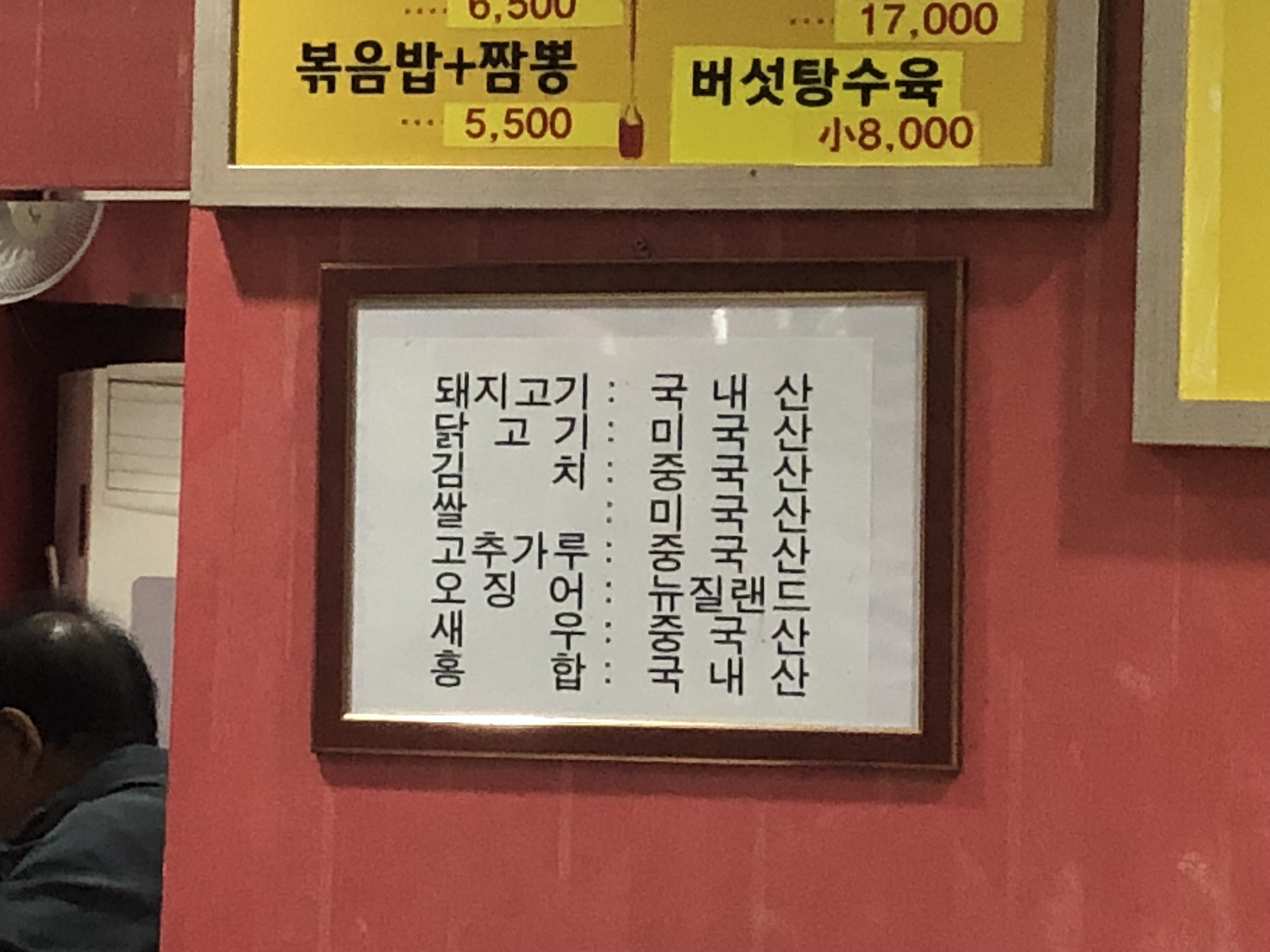 원산지입니다. 돼지고기와 홍합은 국내산을 사용합니다.