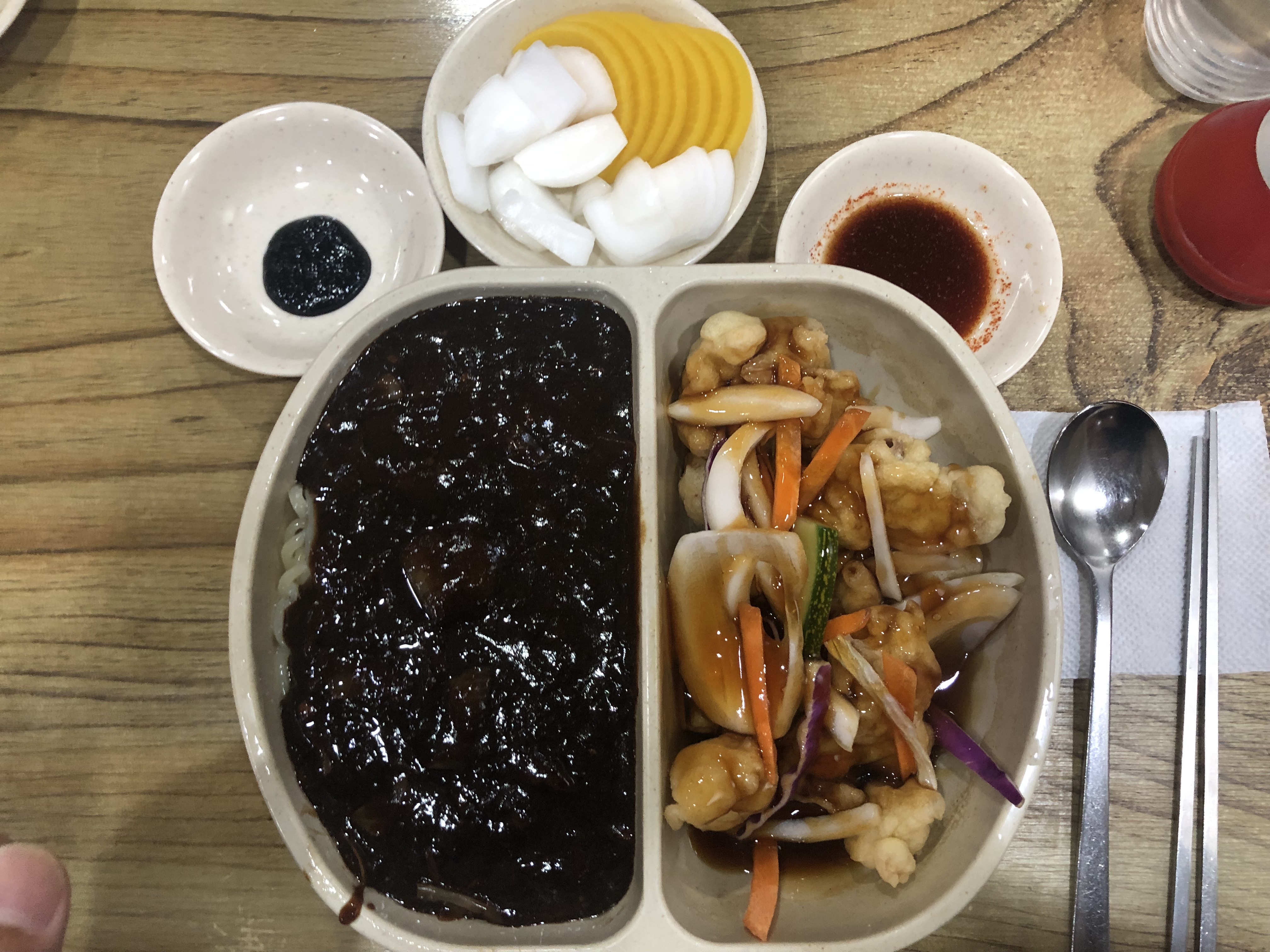 사실 이곳에 5~6번 정도 오면서 짜장면, 간짜장, 짬뽕, 볶음밥 등 하나씩 먹어 보았는데요. 오늘은 한 번도 먹어보지 못한 한 그릇에 두 가지 메뉴인 탕수육+짜장면 (6,000원)을 시켜보았습니다.