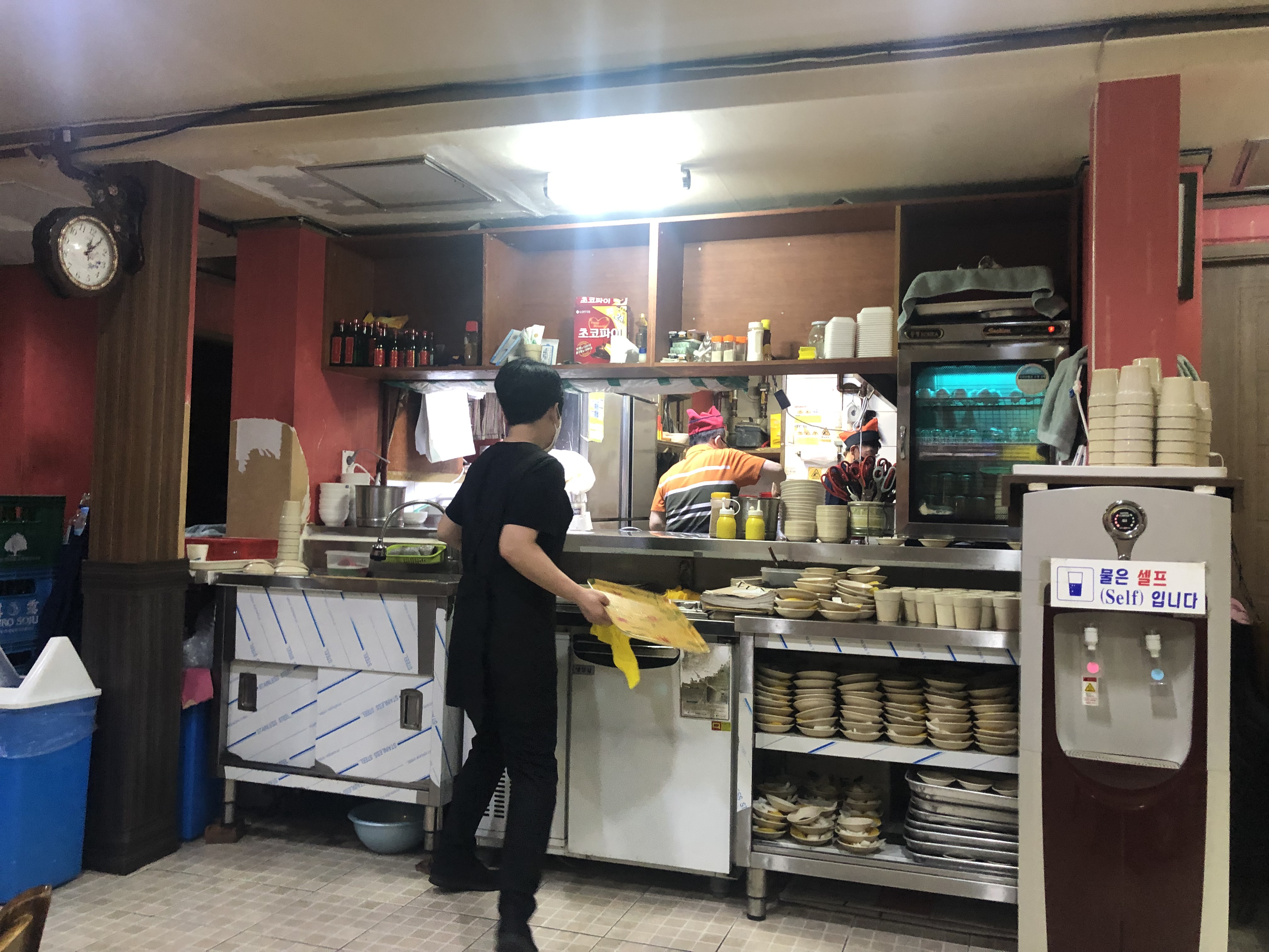 4인용 테이블이 약 20개 정도 되지만 점심시간이 되면 거의 다 찹니다. 주요 고객은 40 ~ 50대 어르신들입니다.