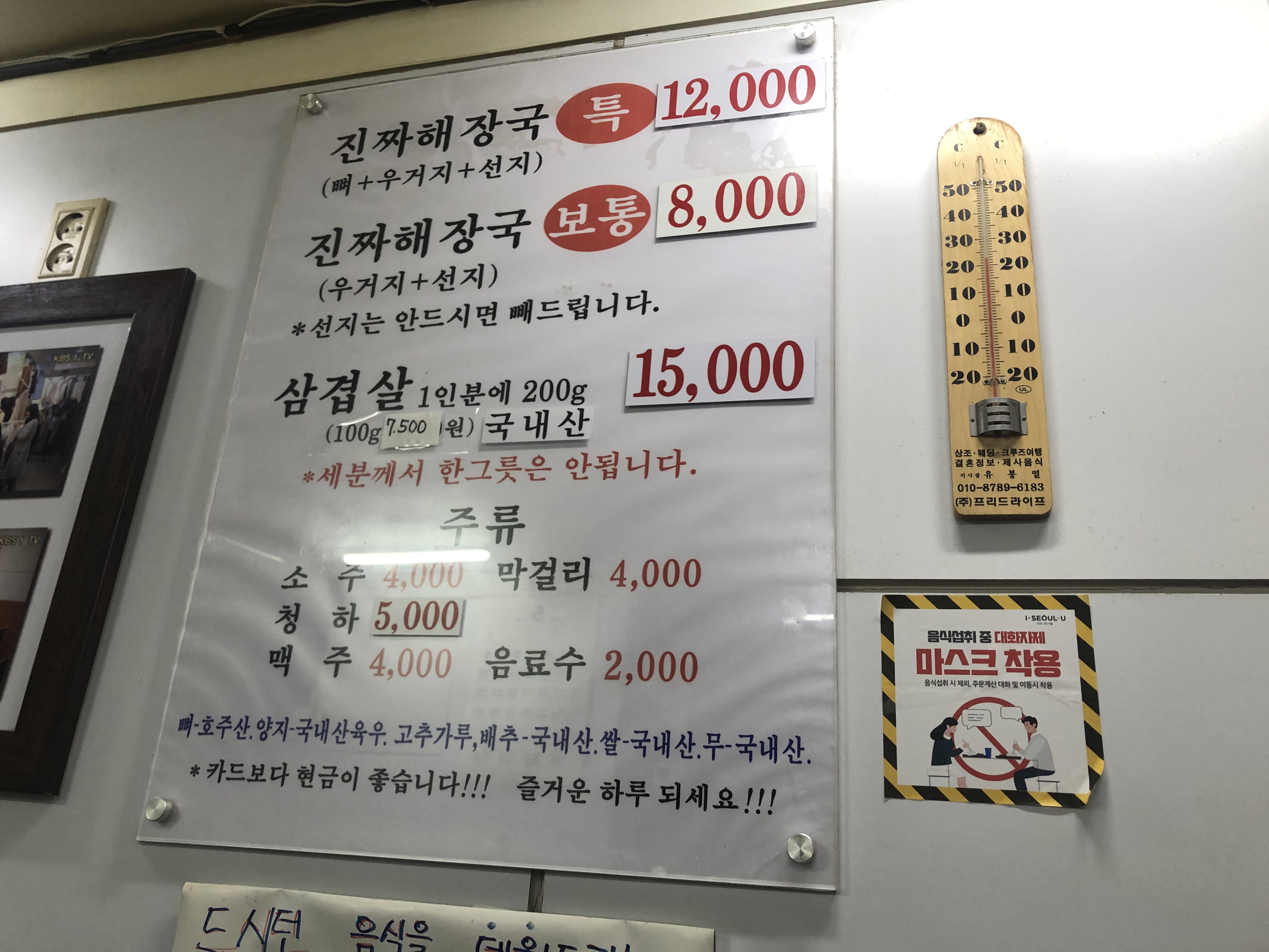 메 뉴: 진짜해장국 (보통 or 특), 삼겹살