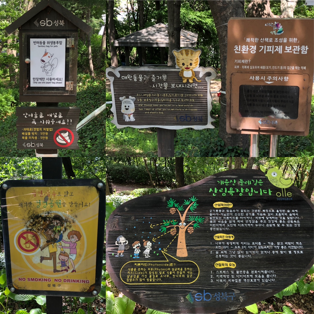 산책로를 걷다 보면 각종 안내판들이 정말 많이 보이는데 개운산을 방문하는 모두가 이용할 수 있는 시설이니만큼 꼭 읽어보고 서로 배려하며 이용해야 할 것이다.