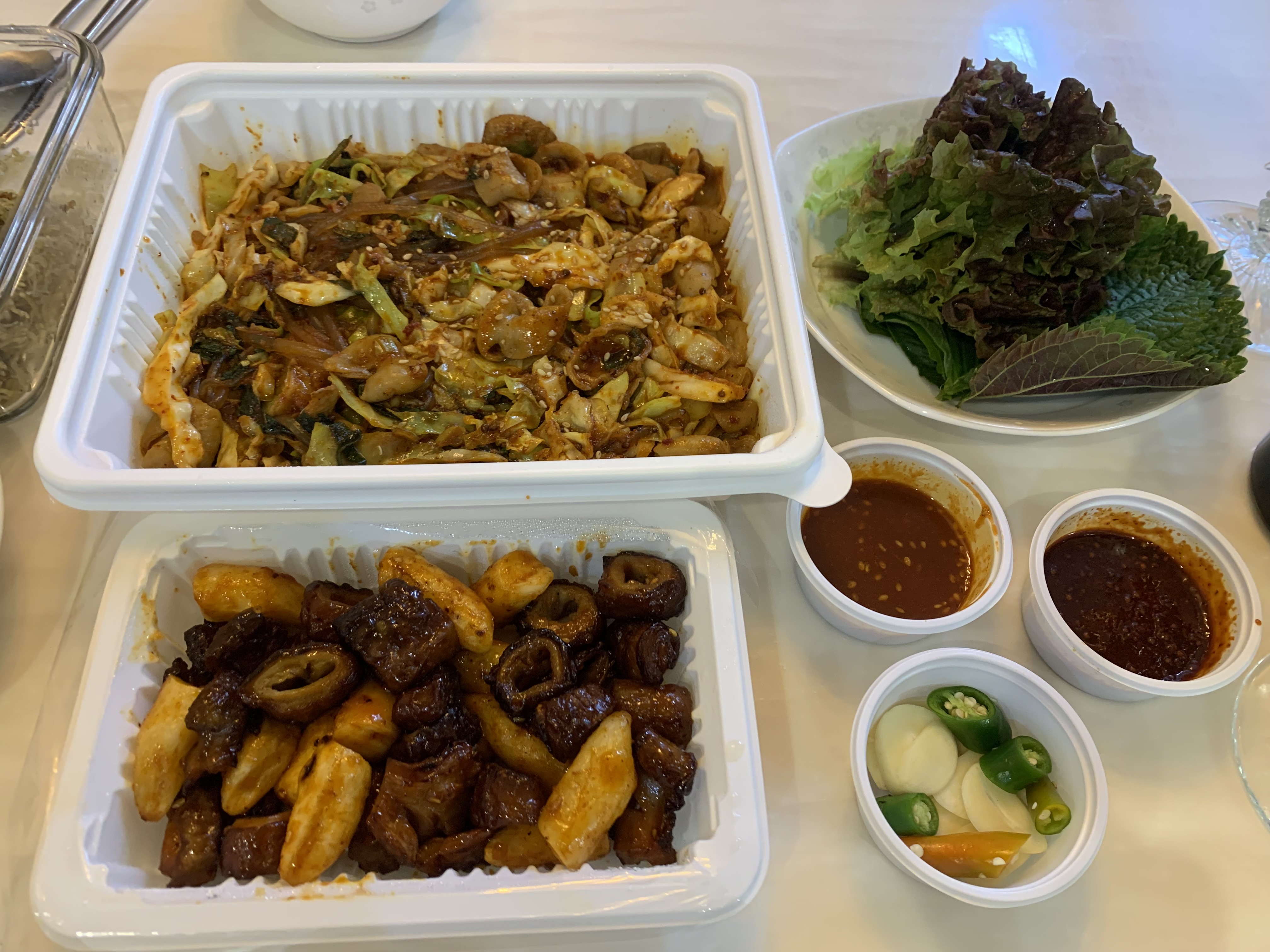 한눈에 보자마자 푸짐합니다. 야채곱창은 야채와 당면 그리고 곱창의 조합이 정말 예술입니다. 곱창에서 누린내 한 번도 난적이 없습니다. 양배추도 많이 들어가 있어서 깻잎과 같이 한입에 먹으면 입안에 꽉 차는 맛이 정말 좋습니다.