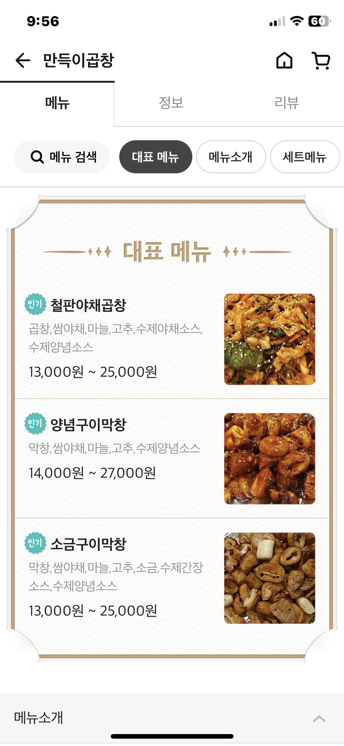 배달의 민족 앱에 만득이곱창 정보
