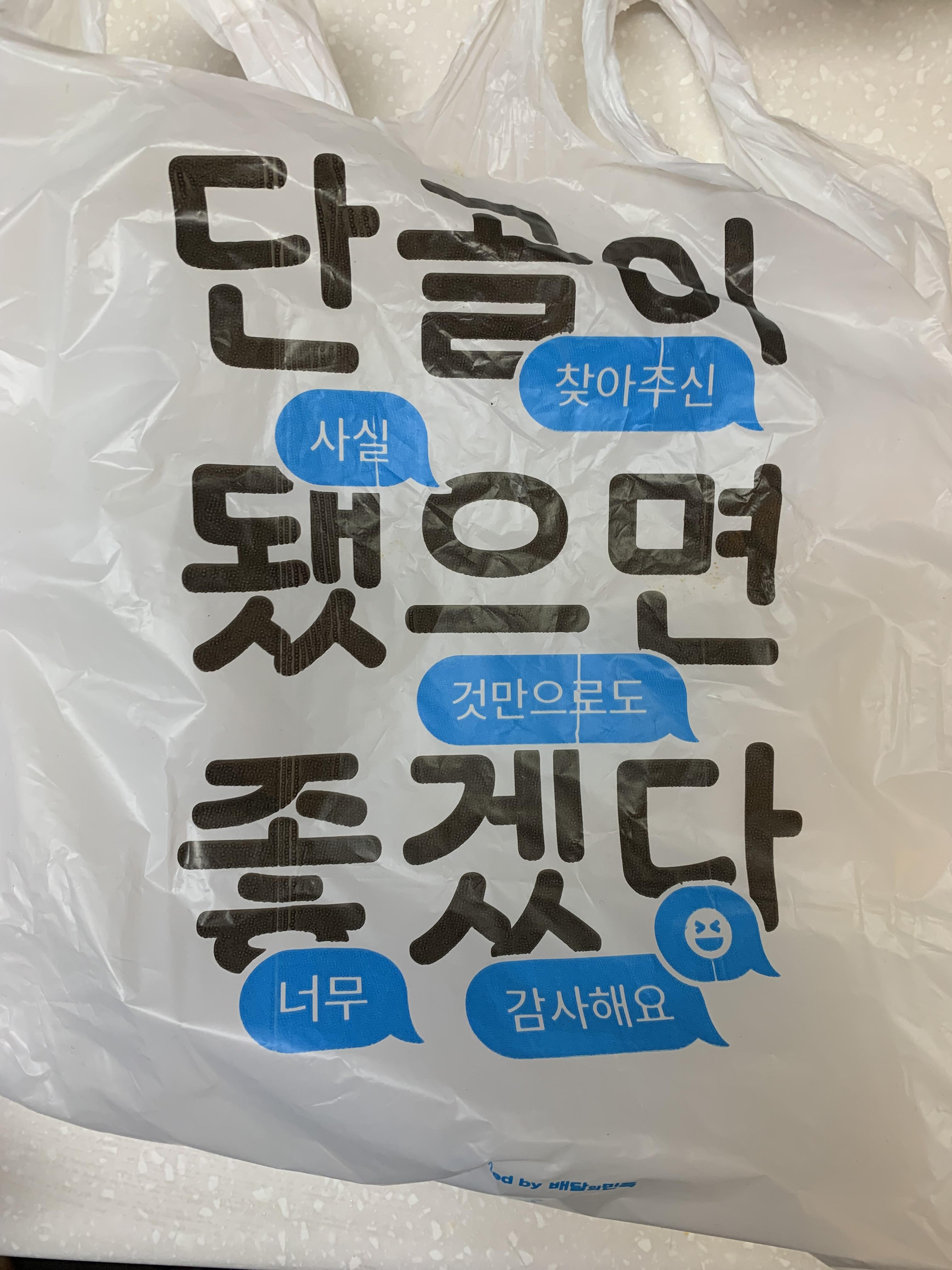 배민 앱에 뜬 시간은 1시간이었는데요. 약 30분 정도 지나니 음식이 왔습니다. 단골이 됐으면 좋겠다는 비닐봉지와 같이 왔는데 이미 단골인데요? ㅋㅋ 하는 생각이 들었습니다.