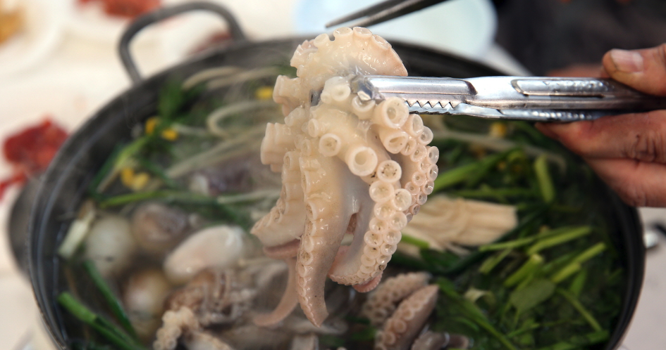 다음은 봄철 제철 해산물인 주꾸미입니다. 탕으로도 먹고 무침으로도 먹고 볶음으로도 맛볼 수 있습니다. 주꾸미 드실 땐 먹물도 함께 드셔보세요. 타우린 성분이 풍부해 혈중 콜레스테롤 예방과 암 예방효과, 성인병 예방 및 피로해소 등에도 매우 좋다고 합니다. 뭐든 제철음식이 가장 좋은 보약인 것 같습니다.