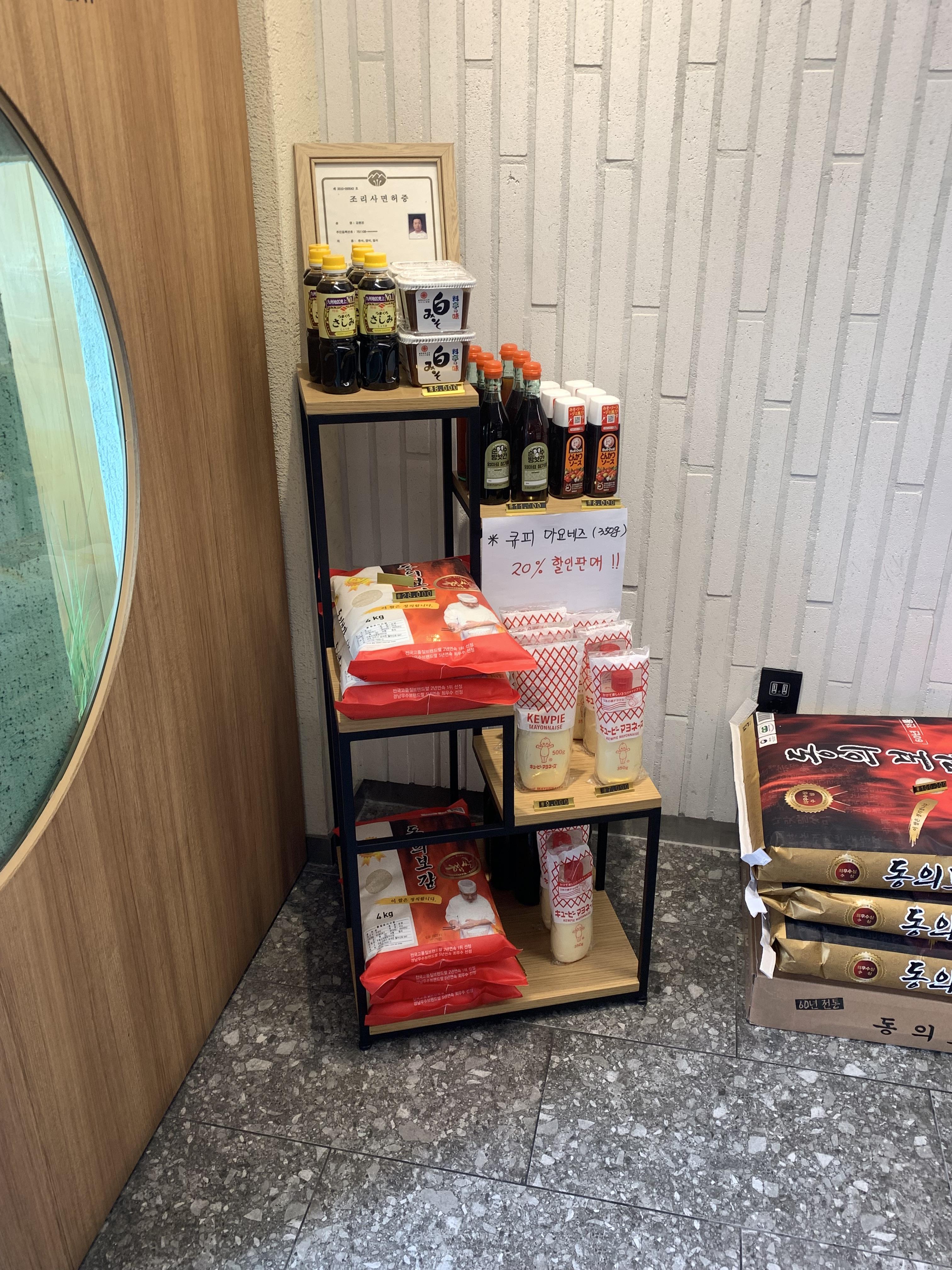 그리고 쌀을 동의보감 쌀을 사용하신다고 했는데 입구에 쌀과 마요네즈, 간장은 별도로 구매가 가능합니다. 다만... 동의보감 쌀이라서 그런지 20kg에 10만 원 정도네요. 후덜덜한 재료를 쓰고 계신 스시진 사장님께 박수를 보냅니다.