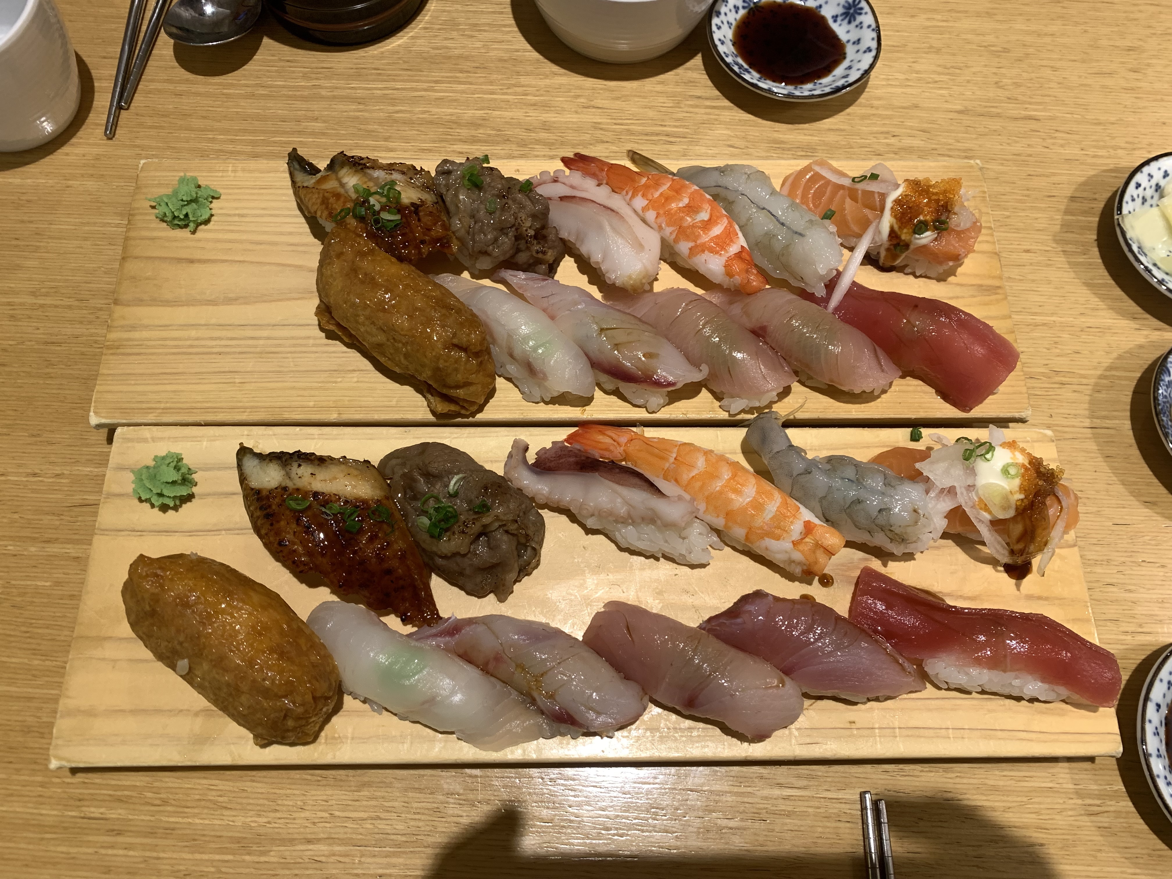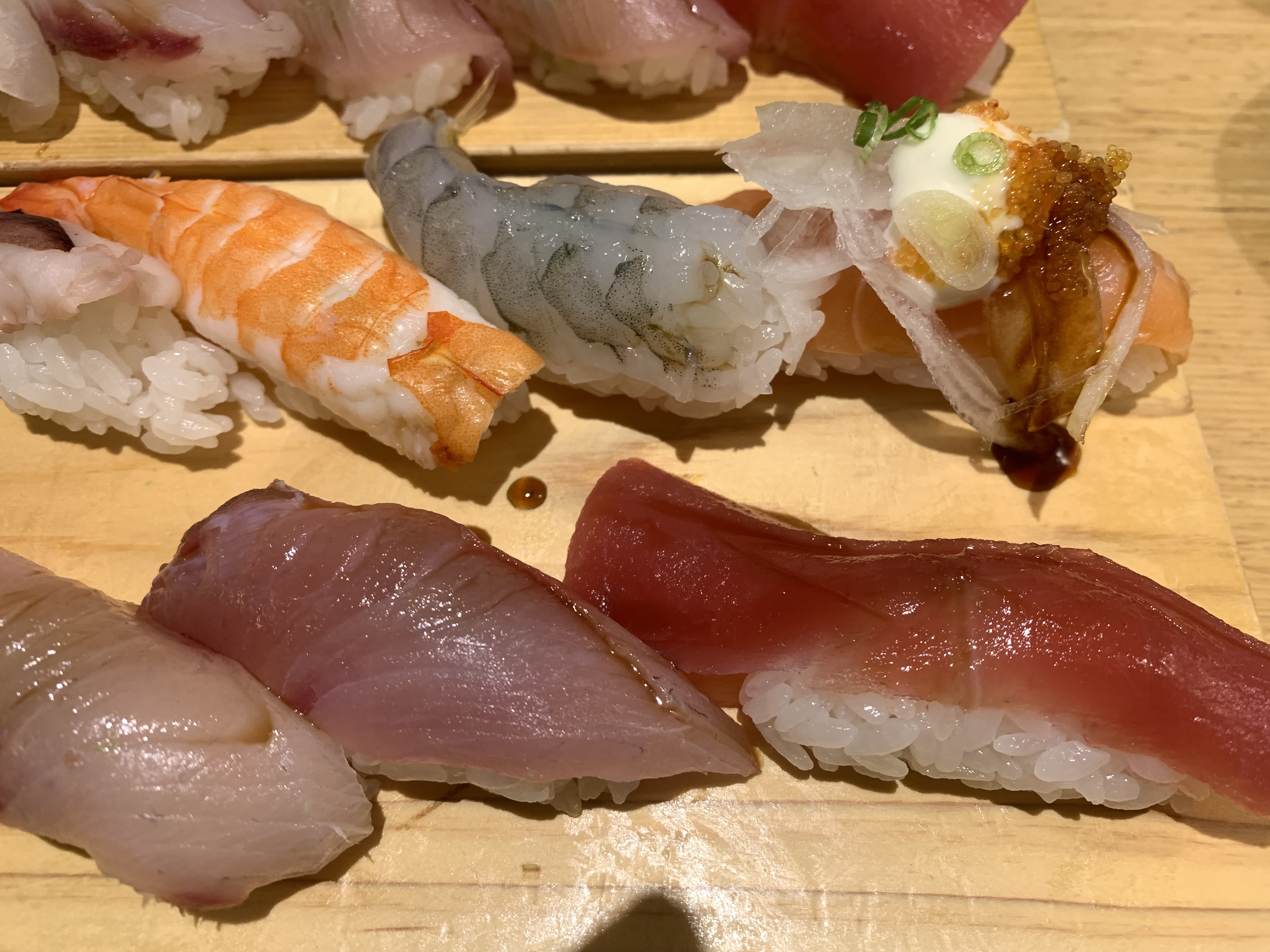 드디어 주만 한 특선 초밥이 나왔습니다. 총 12피스로 구성되어 있습니다. 재료가 신선한 거 느껴지시나요? 생선 하나하나 모두 맛있습니다. 생선에 간장이 살짝 발려 나와서 간도 적당하게 먹을 수 있습니다. 전 짜게 먹는 걸 좋아해서 간장과 고추냉이를 더 찍어 먹었습니다.