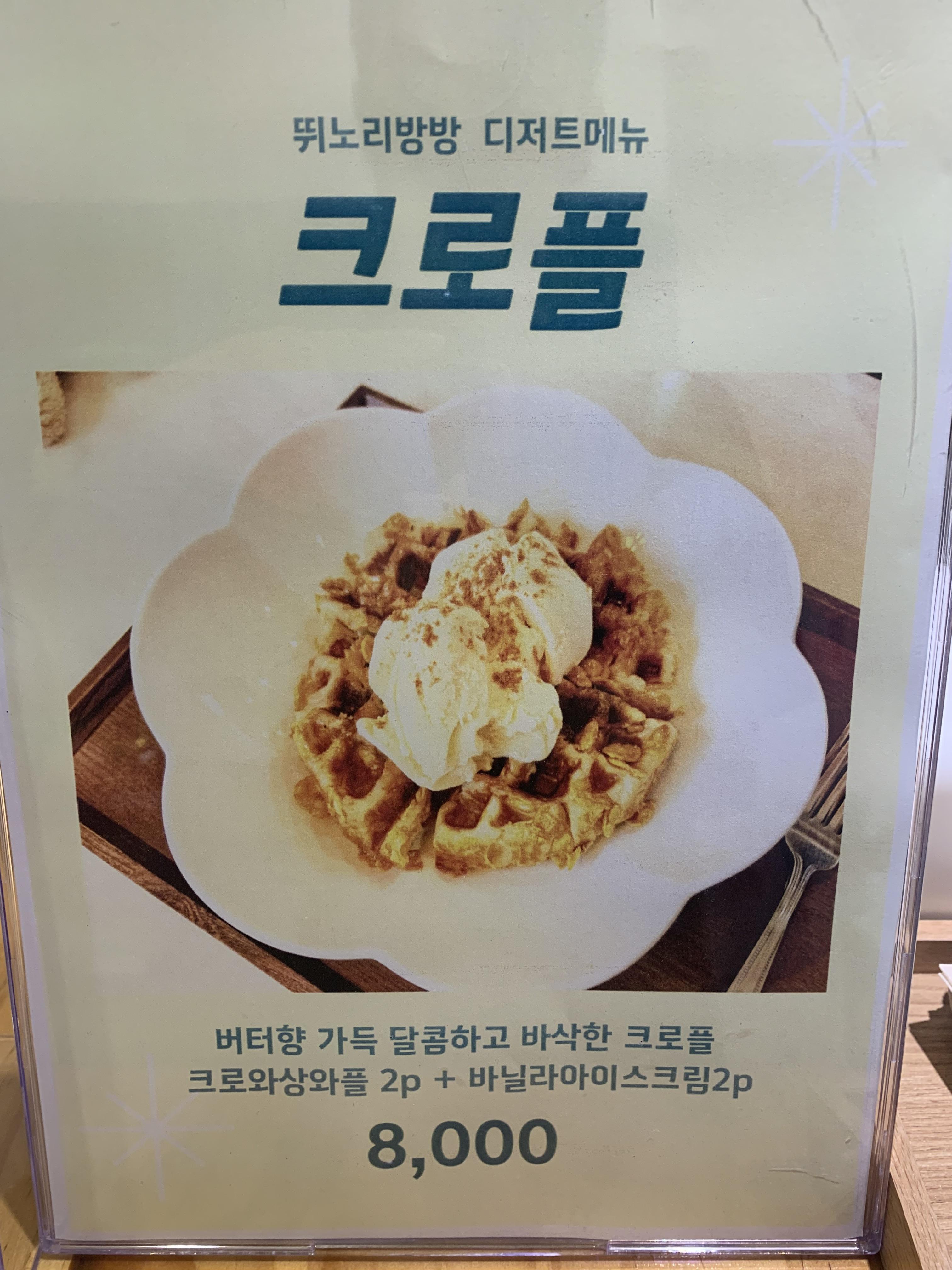 참고로 커피 중 추가요금을 내고 먹을 수 있는 라테류와, 크로플 메뉴는 필자가 방문한 그날부터 판매했다고 하는데 아주 맛있었다.