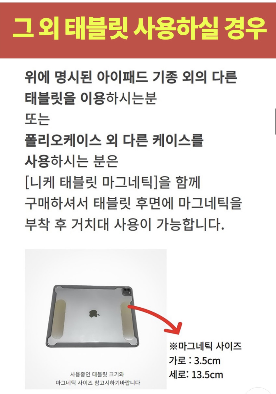 구매시 주의사항으로는 아이폰 후면에 마그네틱 자석이 들어간 게 2018년도부터라고 합니다. 모델로 보면 아이패드 미니 6세대, 아이패드 에어 4, 5세대, 아이패드 프로 11인치 1,2,3,4세대, 아이패드 프로 12.9인치 3,4,5,6세대 이렇게 만 자석 사용이 가능합니다.