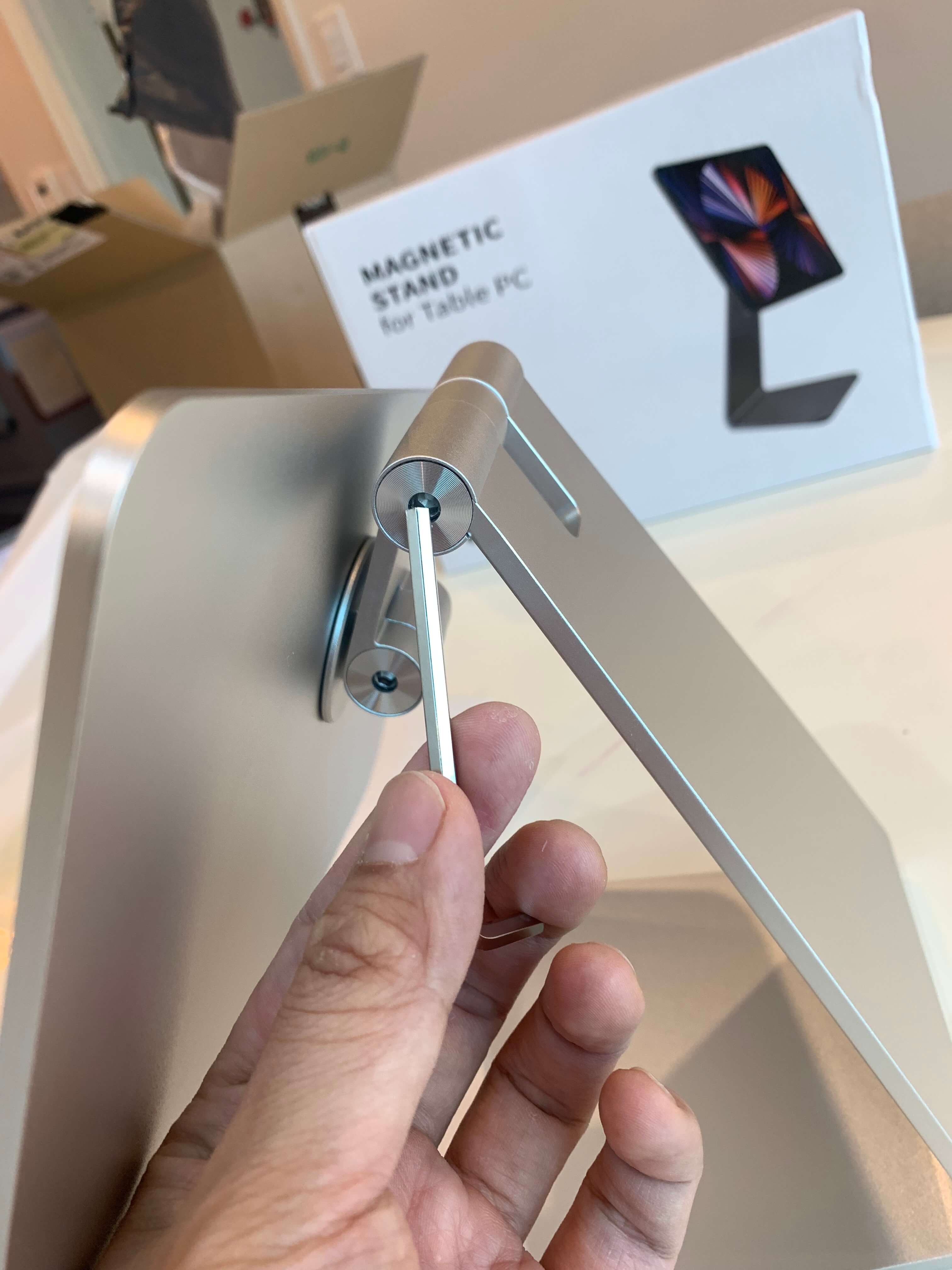 박스를 열면 강도조절을 위한 육각렌치가 각각 1개씩 2개 들어있고 메인 거치대는 흰 비닐로 포장되어 있습니다.