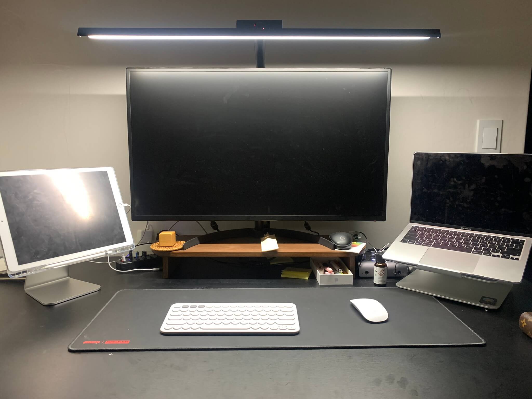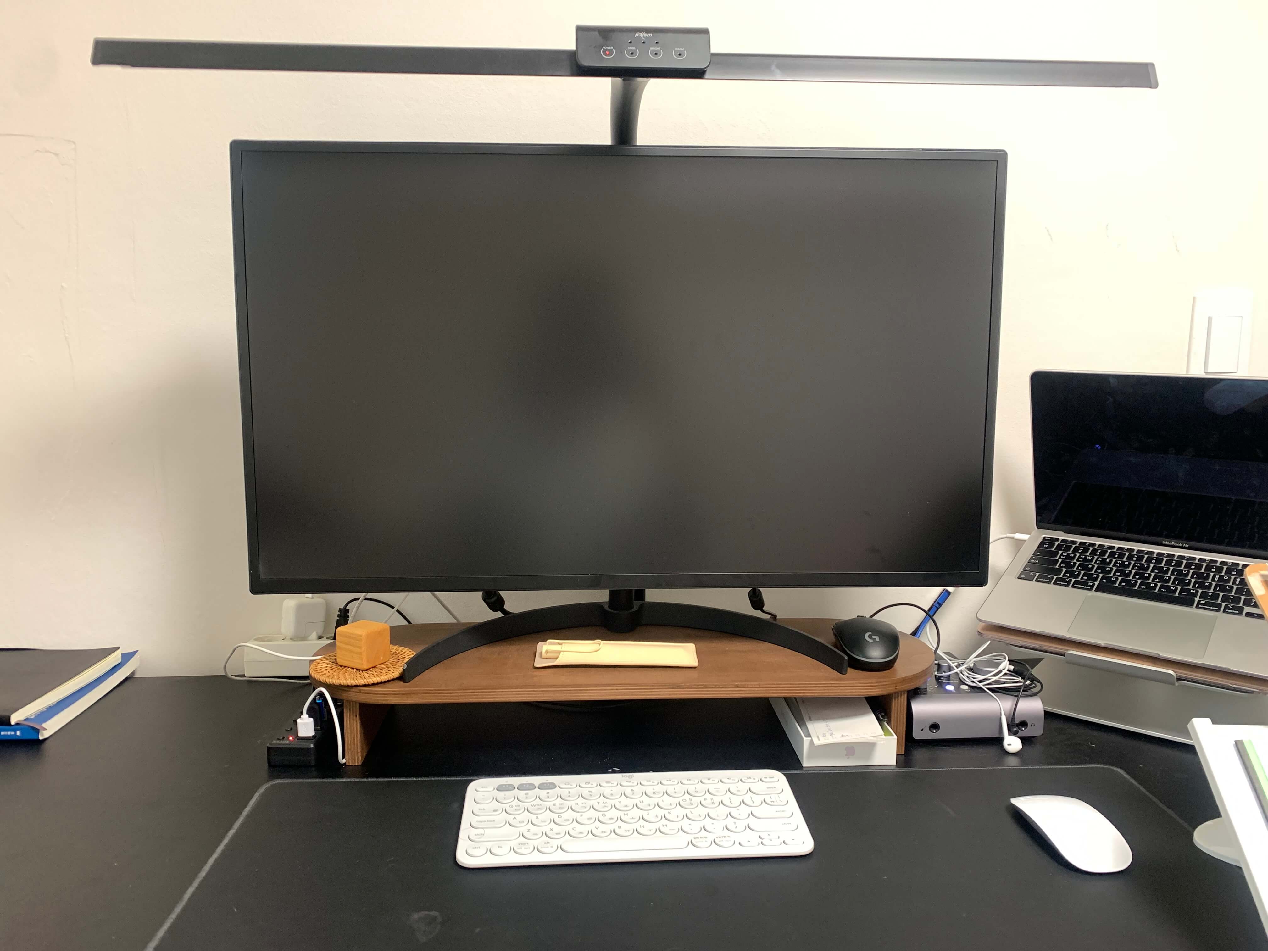 먼저 데스크 셋업 전 사진입니다. 32인치 모니터, 조명, 우측에 맥북에어를 세팅하여 쓰고 있었는데요. 음악을 틀어 놓거나 영상을 참고할 때 화면에 영상까지 띄워 놓으려니 작업공간이 모자라더라고요. 그래서 아이패드를 세팅하고 영상을 참고하면서 작업을 진행할 수가 있어 참 좋았습니다.