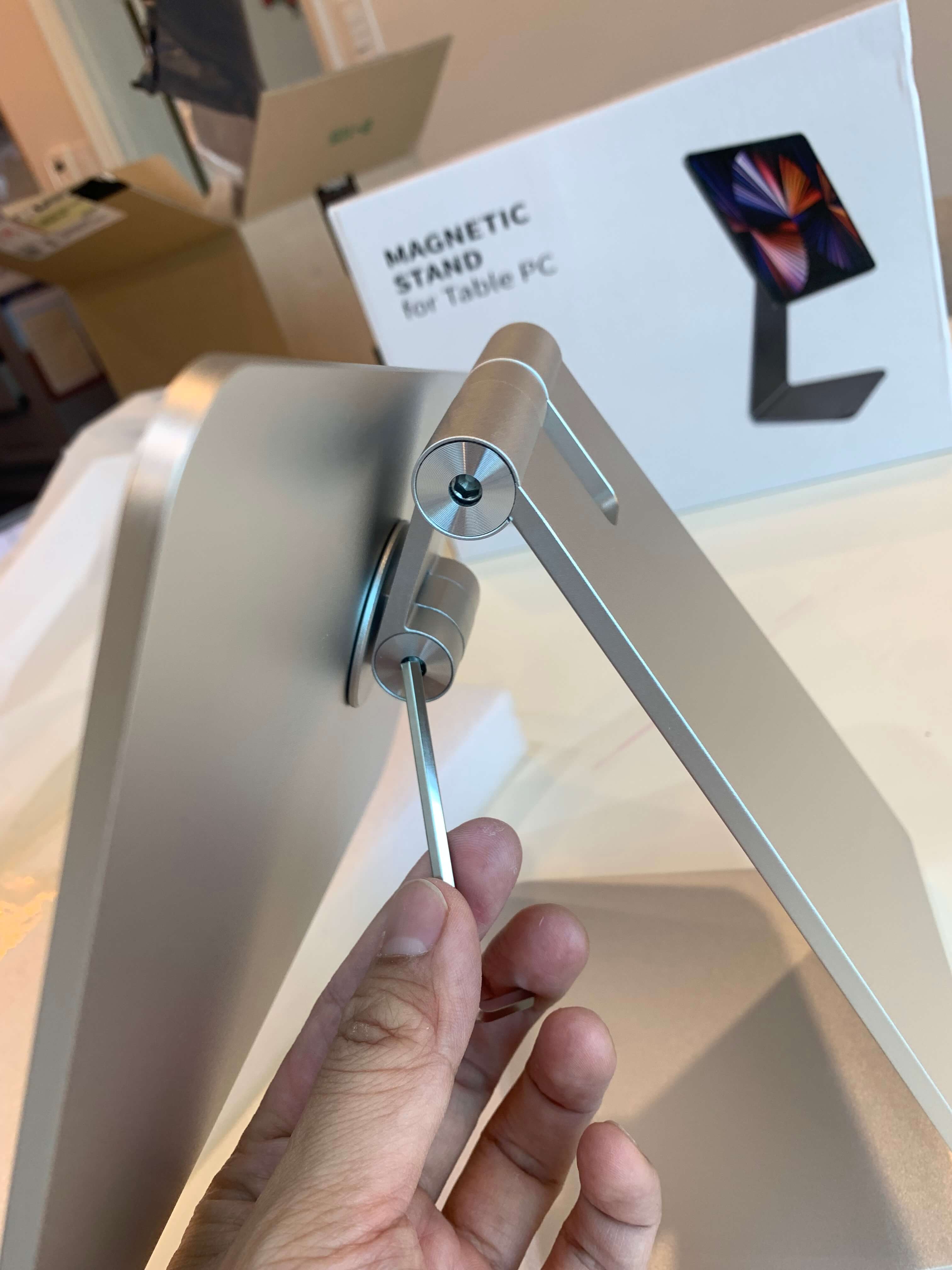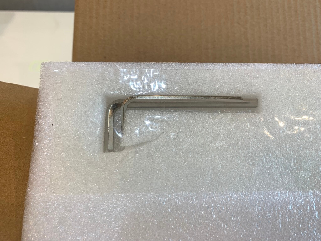 박스를 열면 강도조절을 위한 육각렌치가 각각 1개씩 2개 들어있고 메인 거치대는 흰 비닐로 포장되어 있습니다.