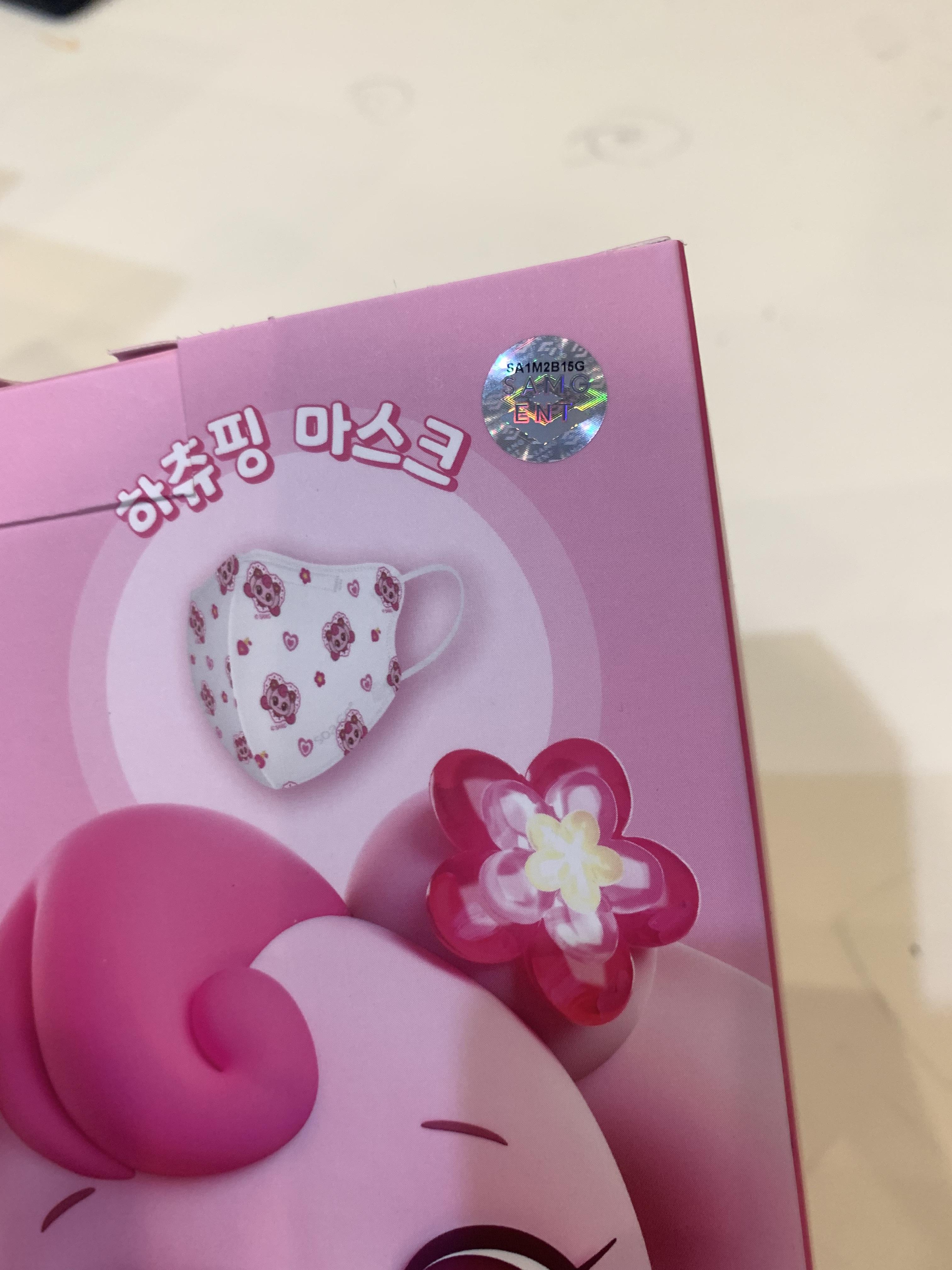 마스크의 개별포장 모습입니다. 하츄핑 캐릭터와 제원이 앞뒤로 나와있습니다. 박스에 나와있는 것과 같습니다. 비닐은 OTHER로 일반쓰레기로 처리해야 하고요. KC인증 마크가 있는 걸 보니 안심하고 사용할 수 있을 것 같습니다.