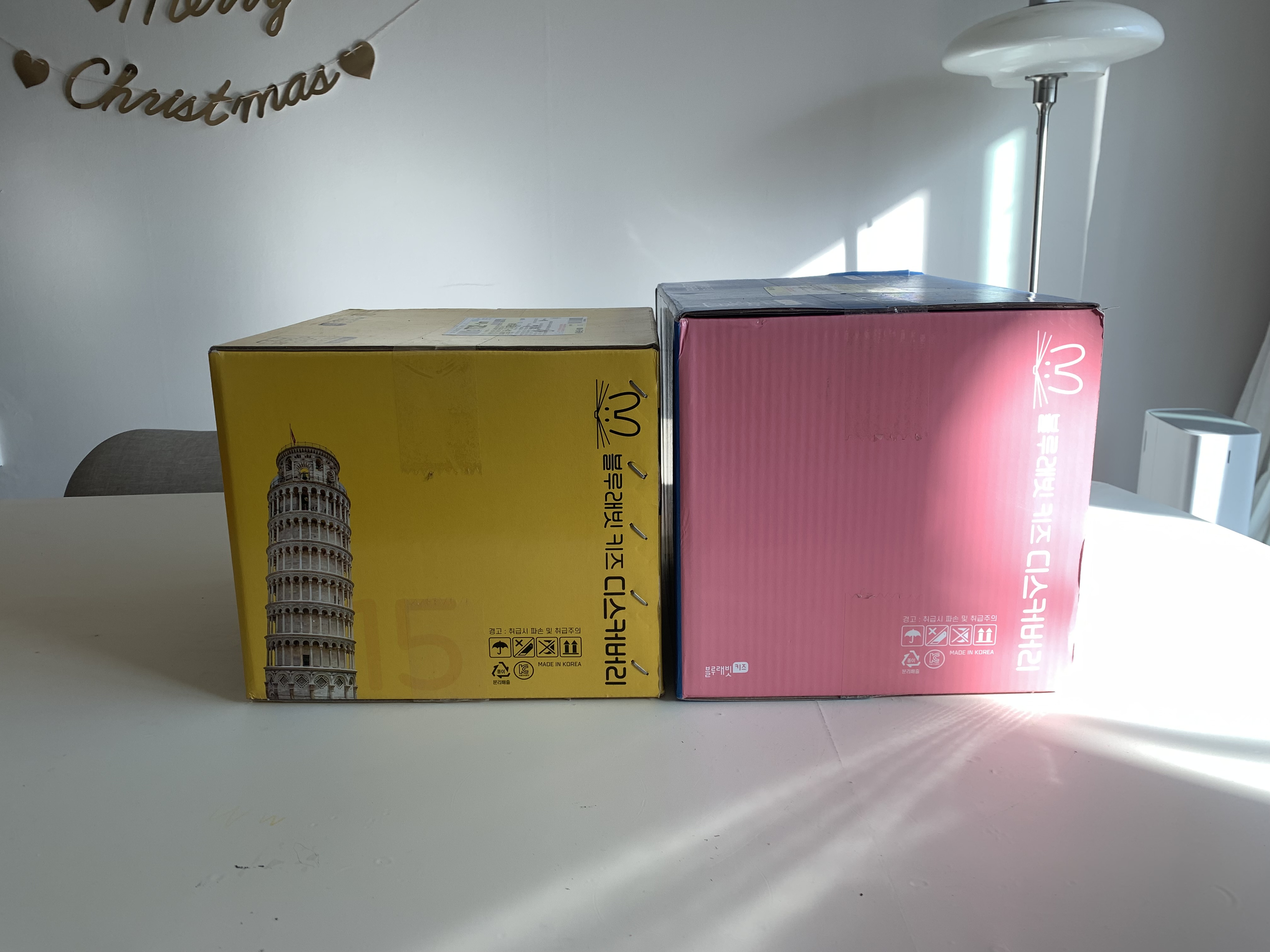 퇴근을 하고 집에 오니 이렇게 두 박스가 문 앞에 도착해 있었습니다. 별도 박스가 있진 않고 저 박스 자체가 택배박스입니다. 노란색 박스에 있는 그림과 사진이 정말 쨍한 상태여서 책의 사진 퀄리티에 기대를 갖게 하네요.