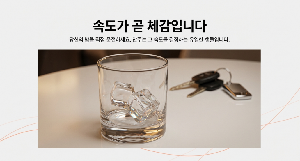 - 안주 없이 ‘한 잔만’ : 가장 위험. 속도 통제가 안 됨