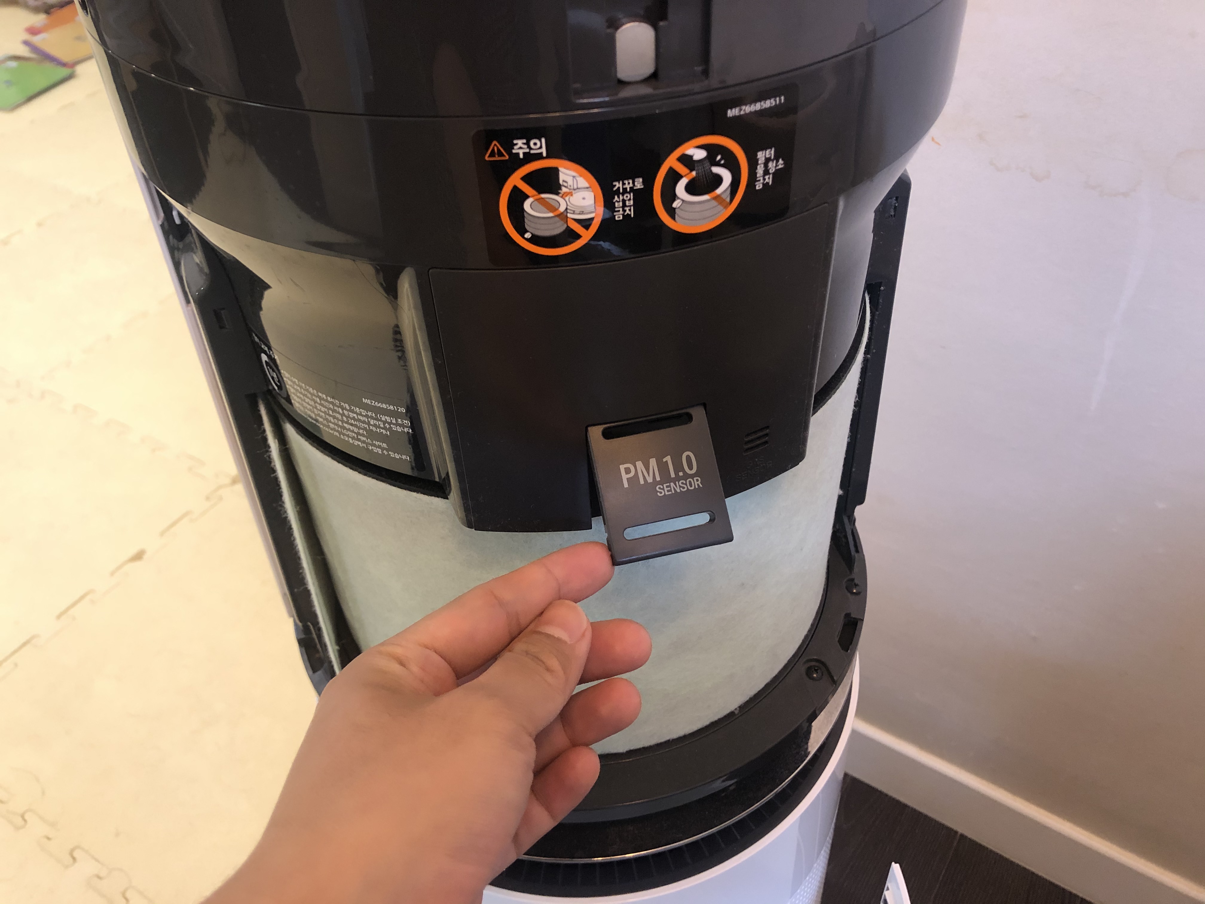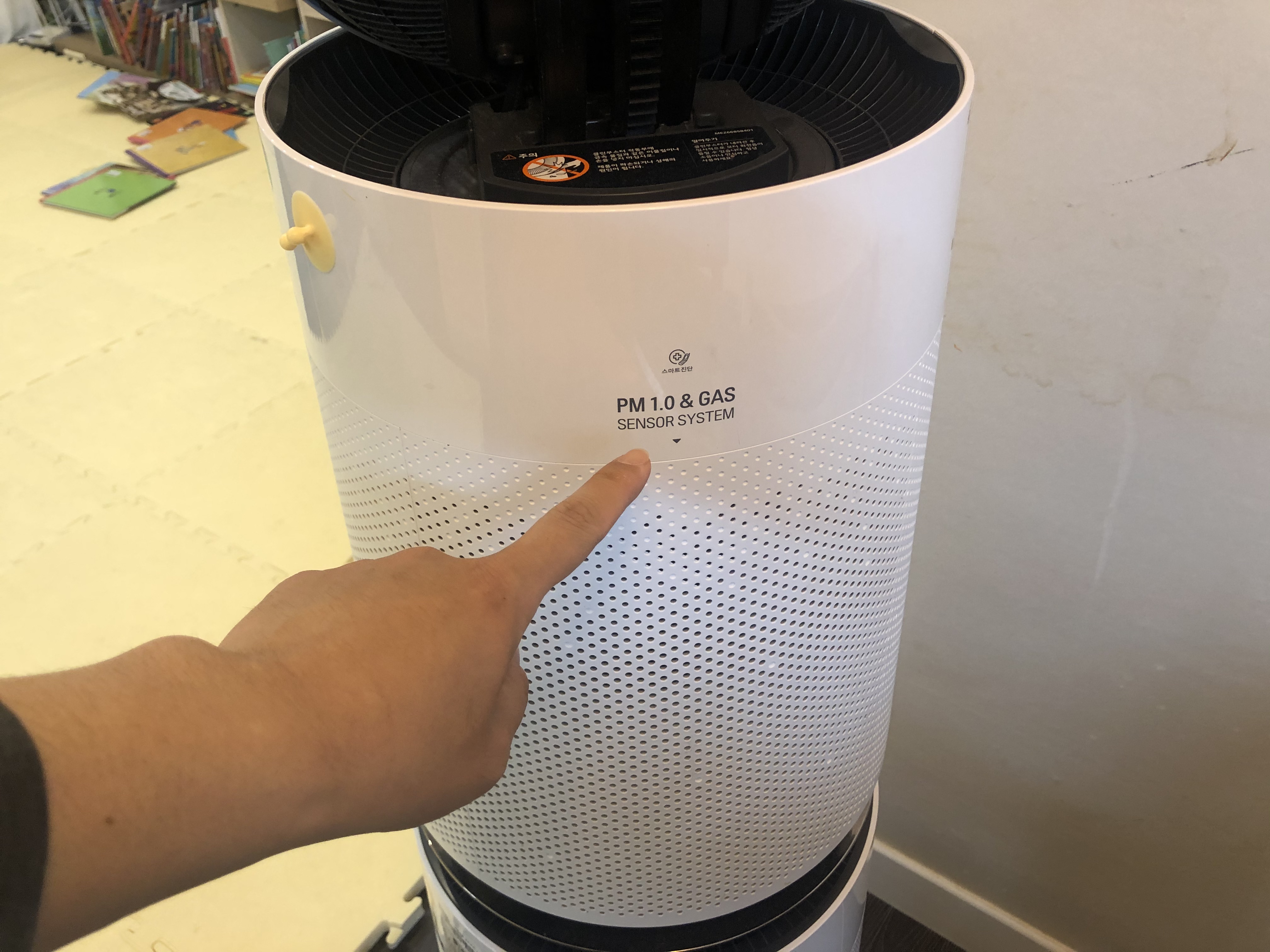 모든 공기청정기에는 먼지센서가 있다. 깨끗하게 관리하지 않으면 미세먼지 농도에 오류가 날 수 있다고 한다. 관리하는 방법은 한 달에 한 번씩 면봉으로 살살 문질러 주면 끝이다.