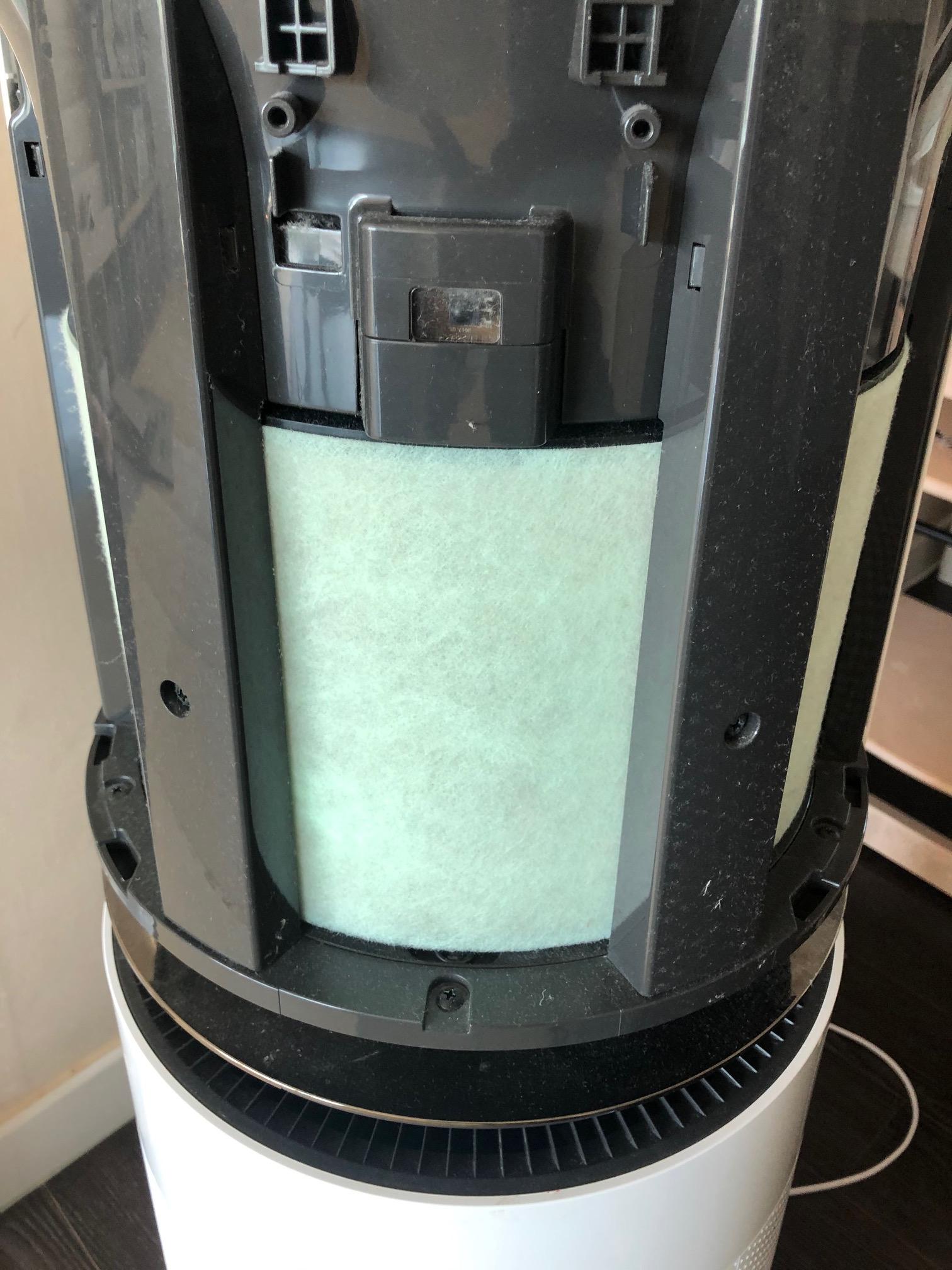 다만 필터가 좋아야 공기청정기의 역할을 제대로 수행할 수 있다. 나중에 필터를 교환하고 싶은 때는 자석으로 연결되어있는 커버를 아래 사진처럼 벗겨 필터를 끼우고 다시 닫으면 된다