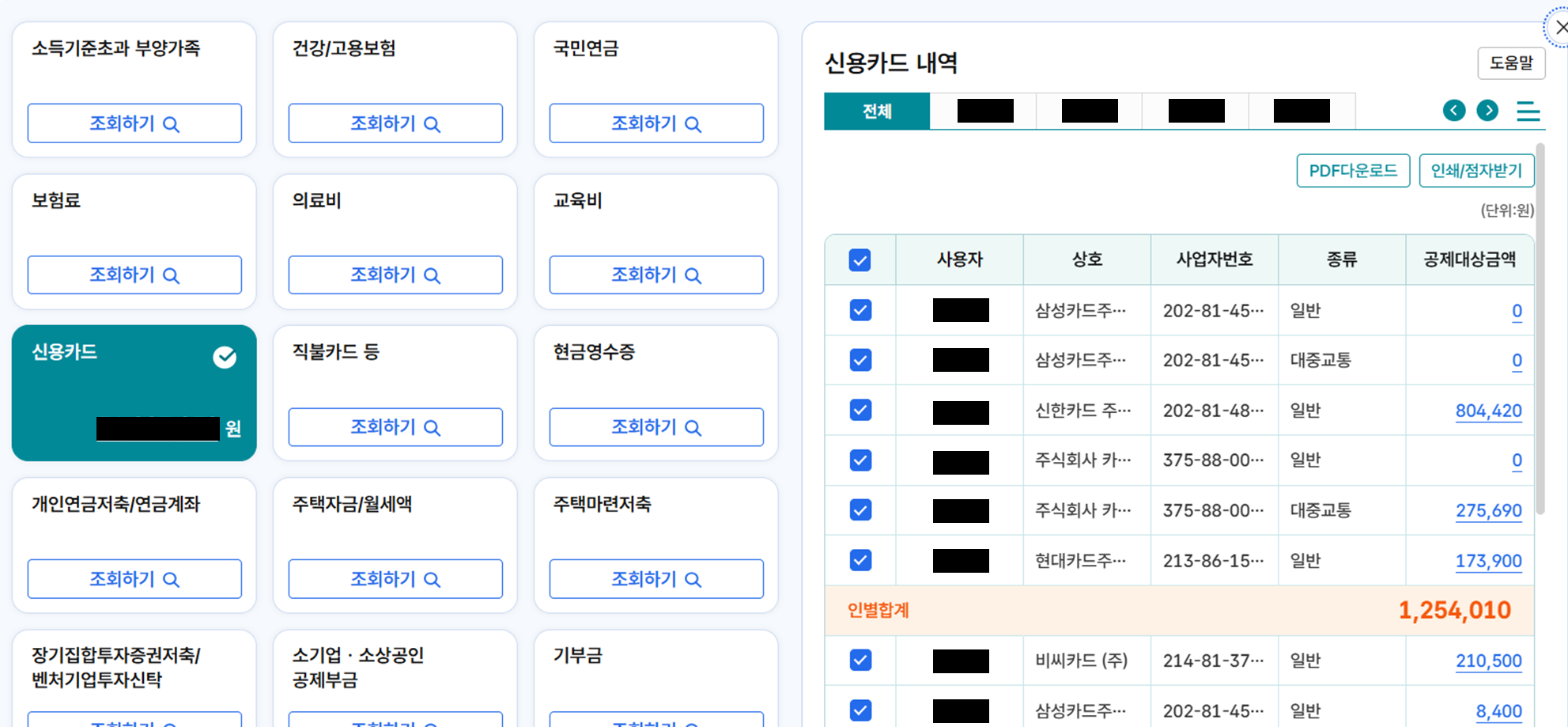 따라서 “신용카드”에서 안 보인다면 체크카드/현금영수증 탭도 함께 확인하는 것이 좋다.