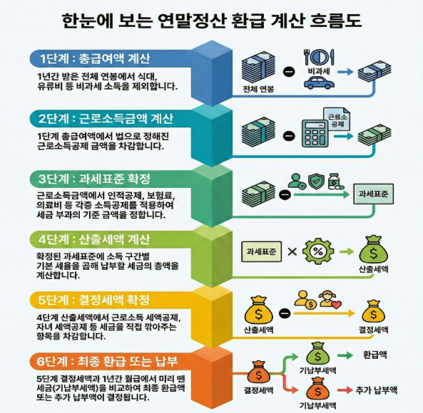 연말정산에서 환급을 늘리기 위해서는 막연하게 "뭘 더 챙겨야하나"를 고민하기보다 어떤 항목부터 점검해야 하는지 순서를 정리하는 것이 먼저입니다. 아래 흐름부터 차근차근 확인해 보시는 것이 도움이 됩니다.