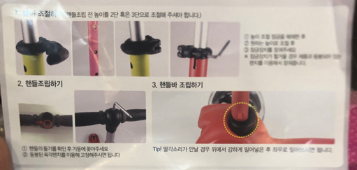 이후에는 아이의 키에 맞춰 손잡이 높이를 조절해주시면 조립은 완료됩니다!
