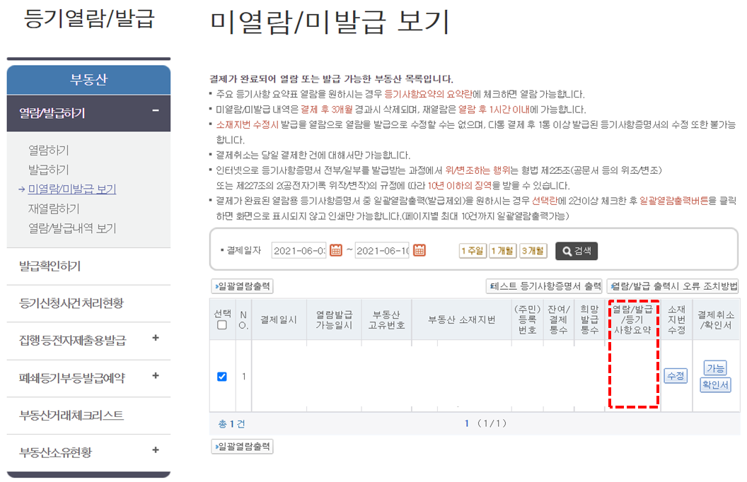 참고로 열람은 법적인 효력이 없으나 발급은 있습니다. 법적인 사항을 검토 중이시라면 발급하여 사용하시기 바랍니다.