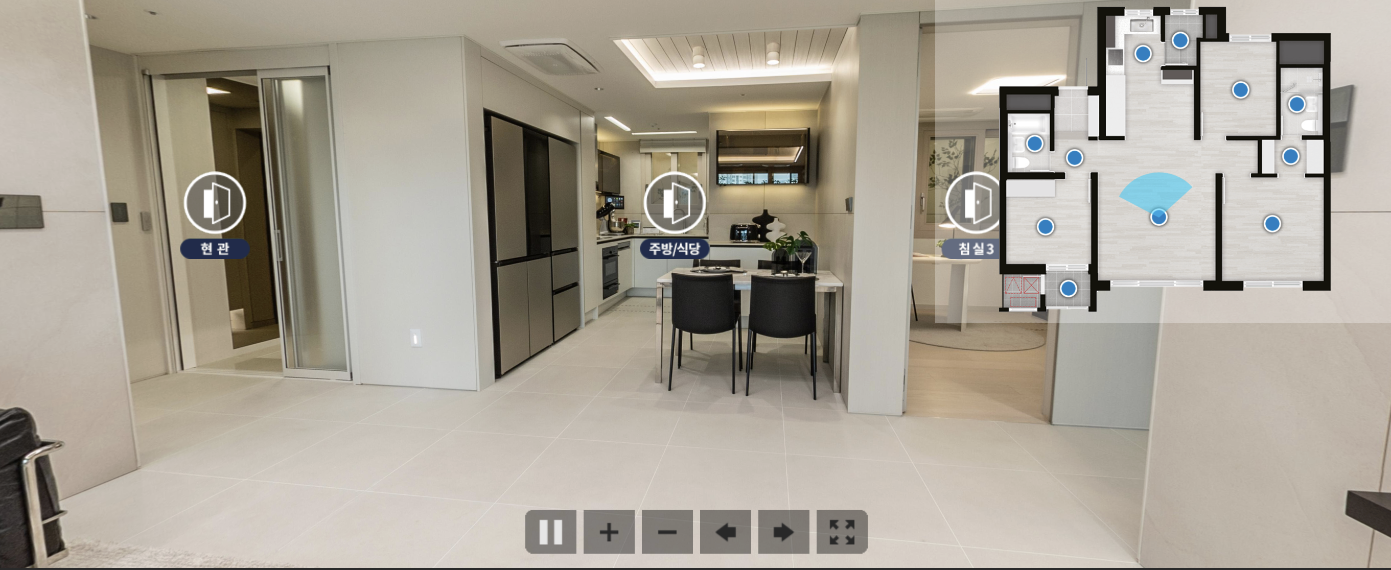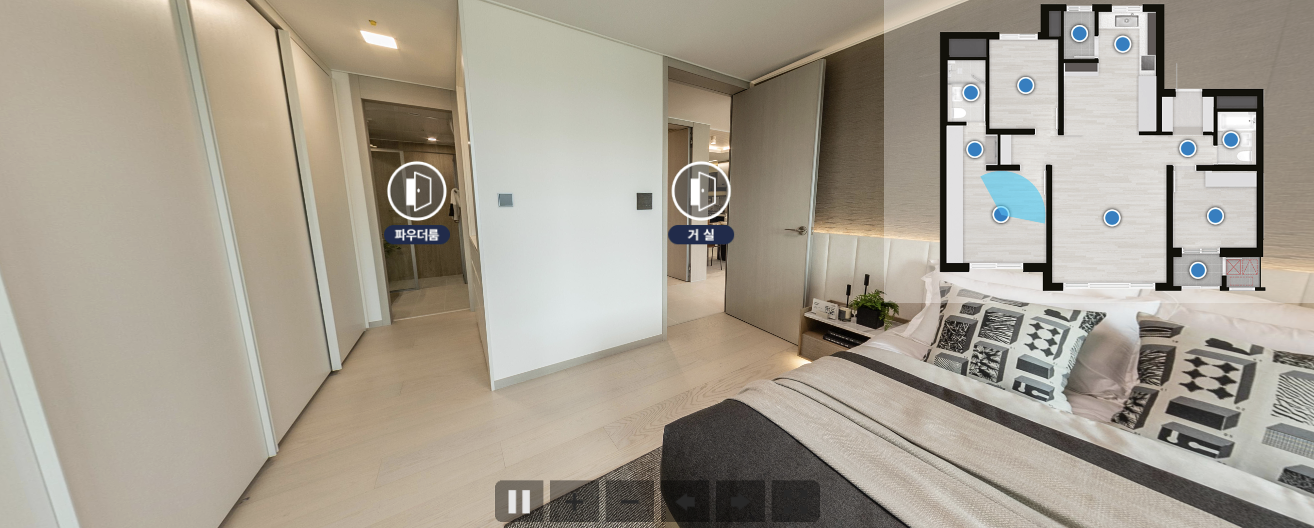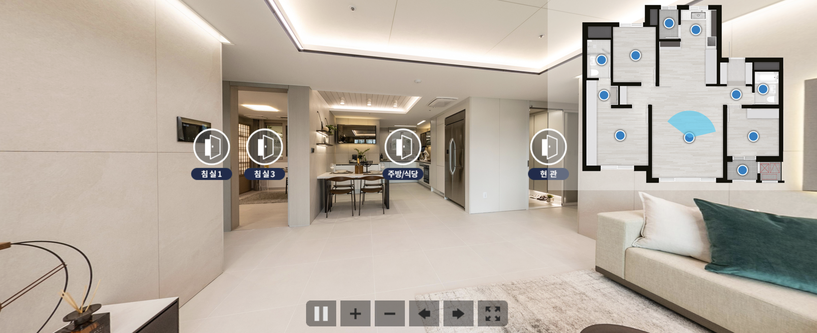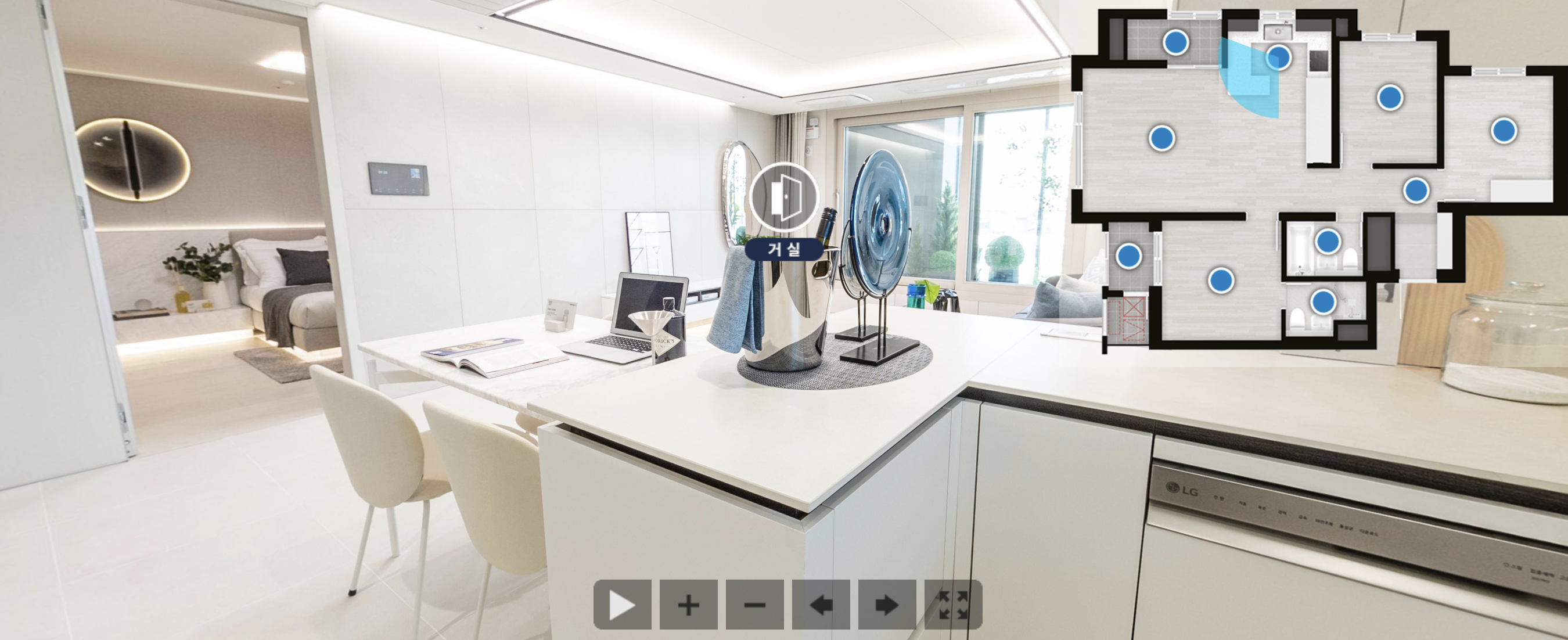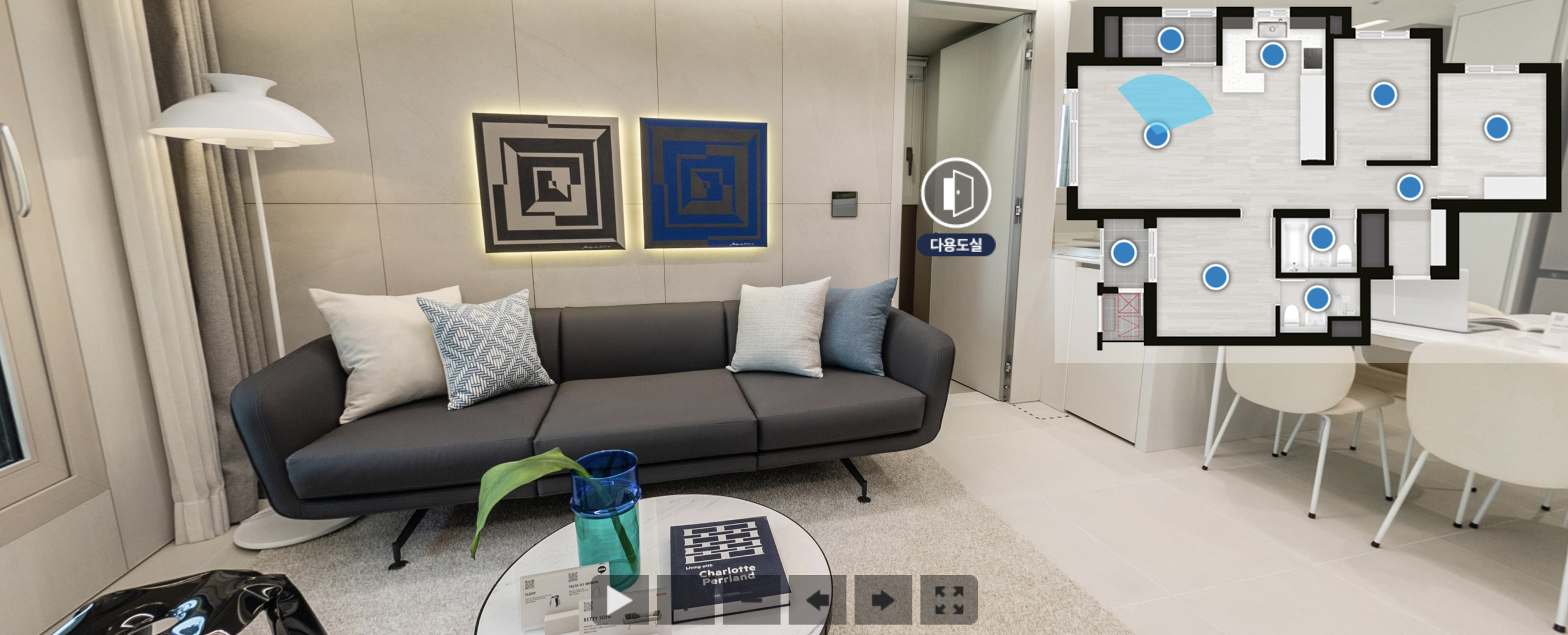 홈페이지이서 상단 메뉴 중 > 세대안내 > E모델하우스에 들어가시면 특정 타입의 모델하우스를 확인하실 수 있습니다. 물론 현장에 직접 방문하셔서 확인하시는 게 크기나, 분위기를 알아보는데 좋지만 이렇게 집에서 눈으로 봐도 개략적으로 파악하실 수 있어서 참 좋습니다.