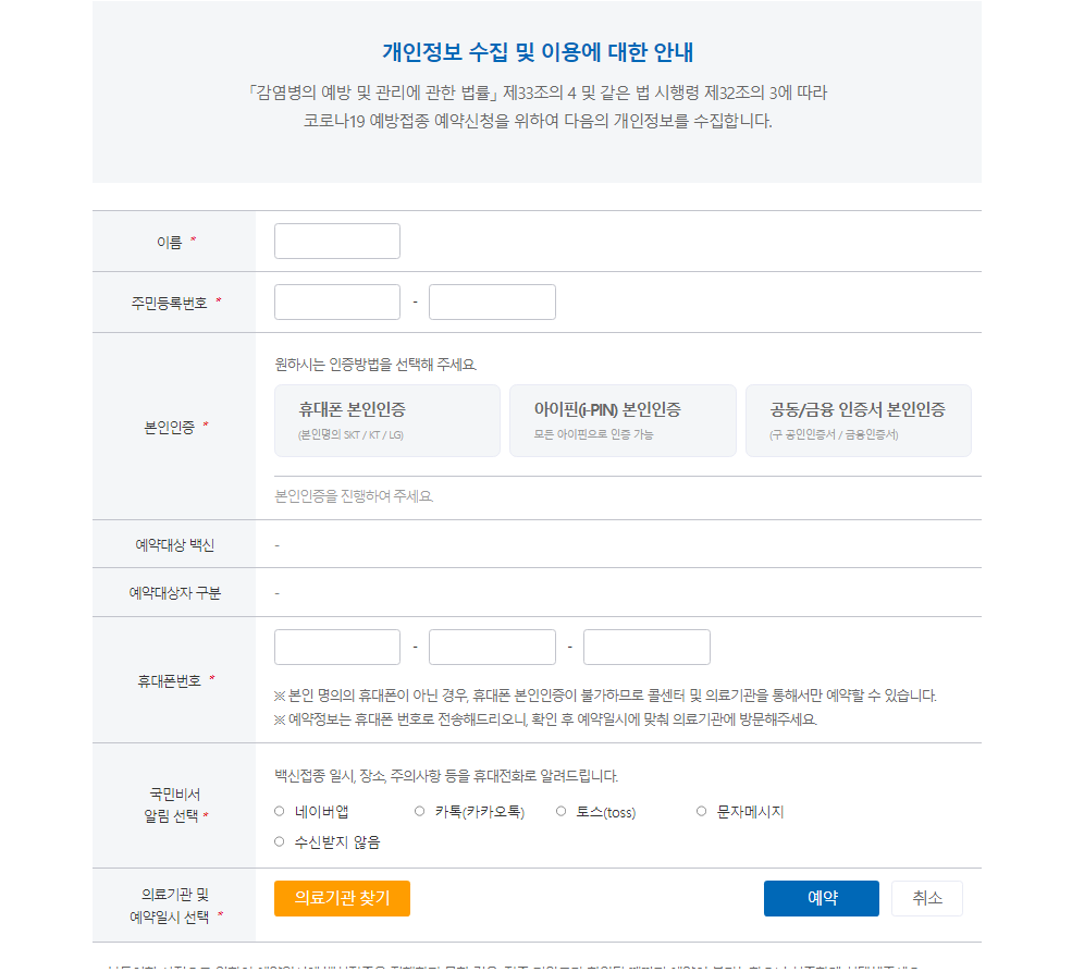 코로나19 예방접종 사전예약 시스템