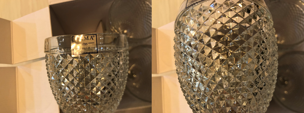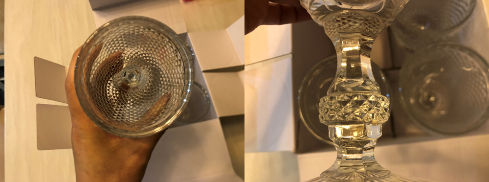 위에서부터 계속 사진으로 보셨겠지만 잔이 정말 화려합니다. 마치 중세 유럽의 귀족의 저택에서나 볼 수 있을 것만 같은 느낌입니다. 제조국도 포르투갈입니다. 높이에 따라 달라지는 패턴과 모양은 그냥 잔으로 쓰기에 상당히 사치스럽게 느껴지기도 합니다. 그만큼 화려한 파티나 기분 전환 용도로 사용하기에 적당할 것 같습니다. 이 잔에 와인이나 위스키를 따르는 생각만으로도 럭셔리함이 올라갑니다.
