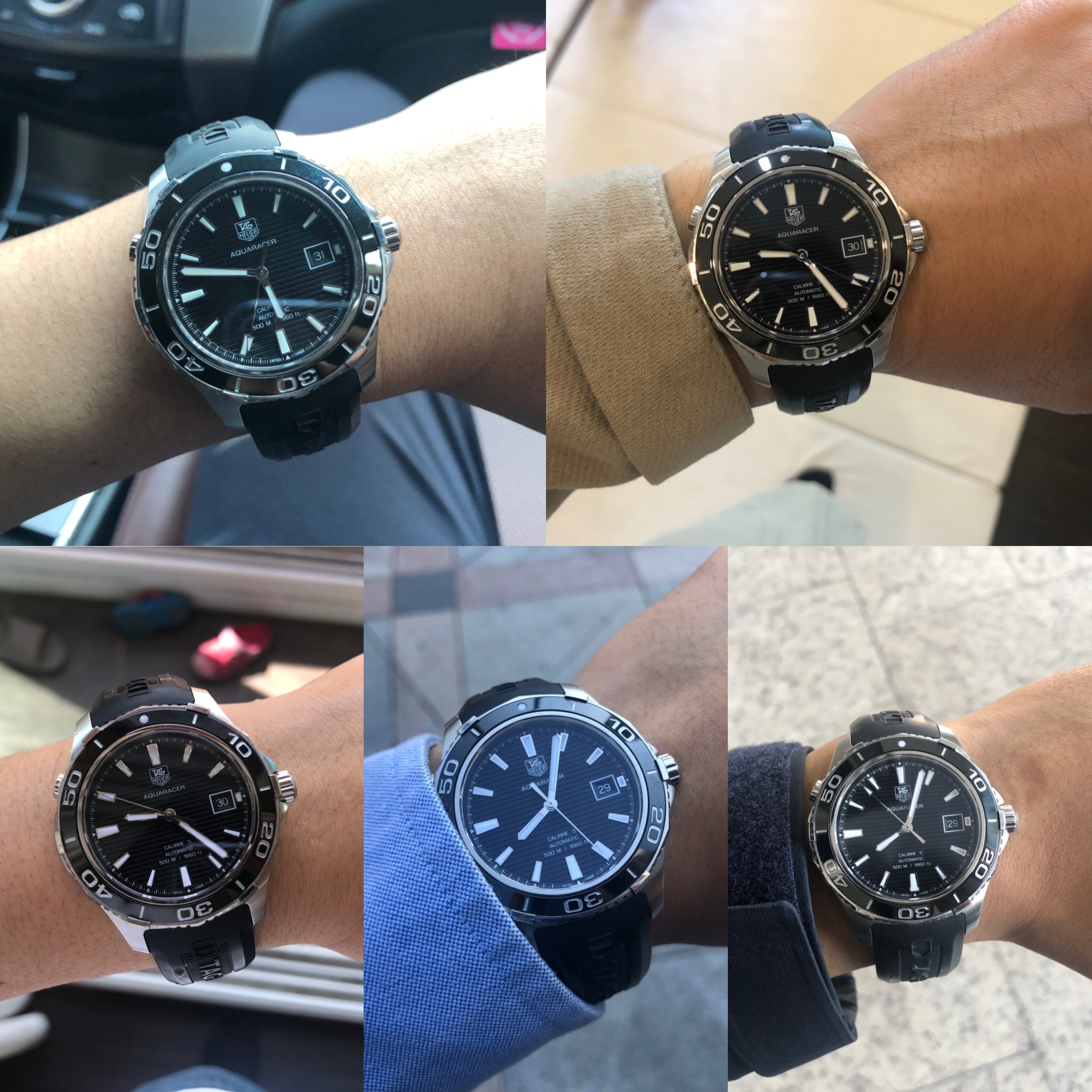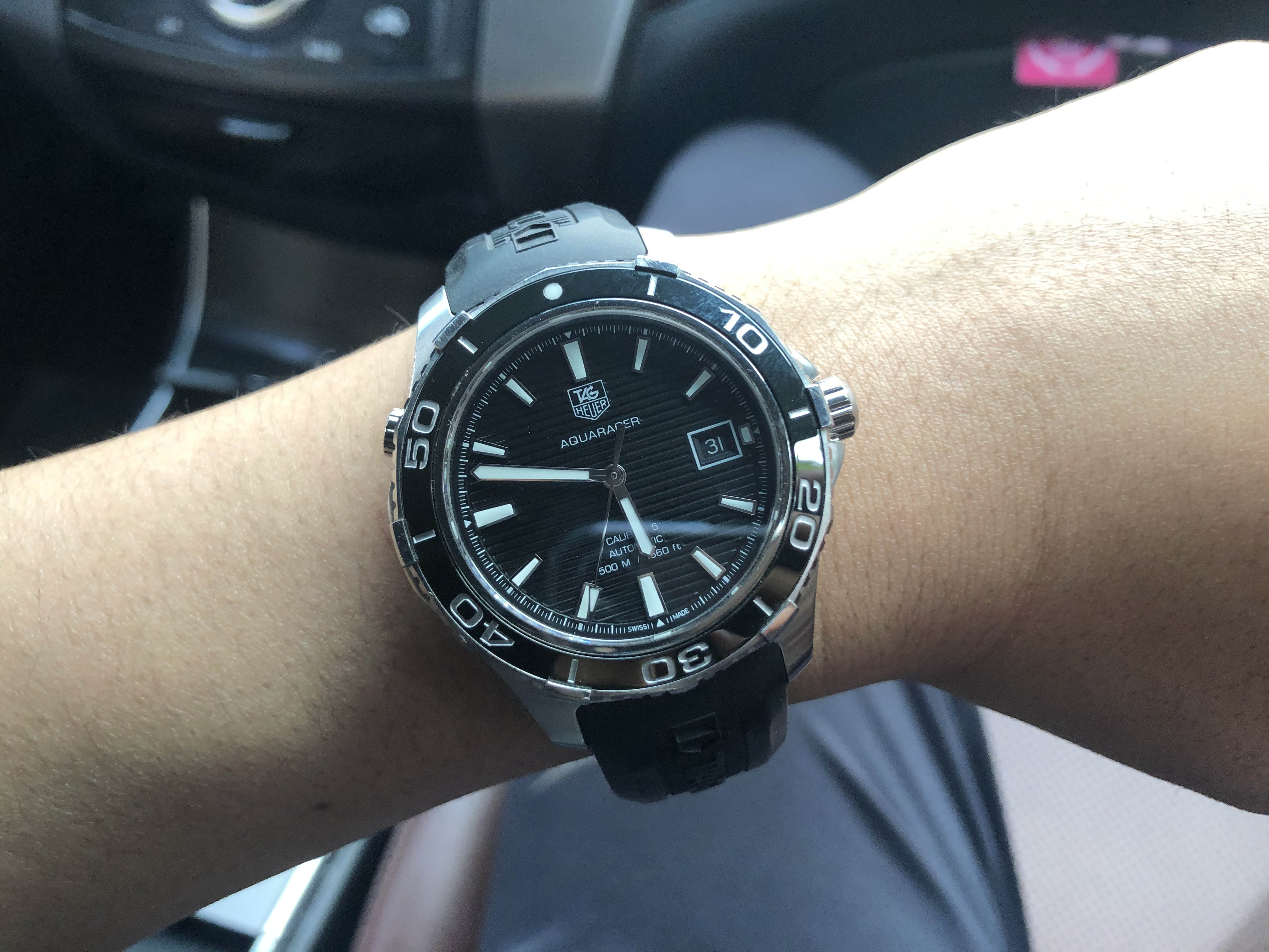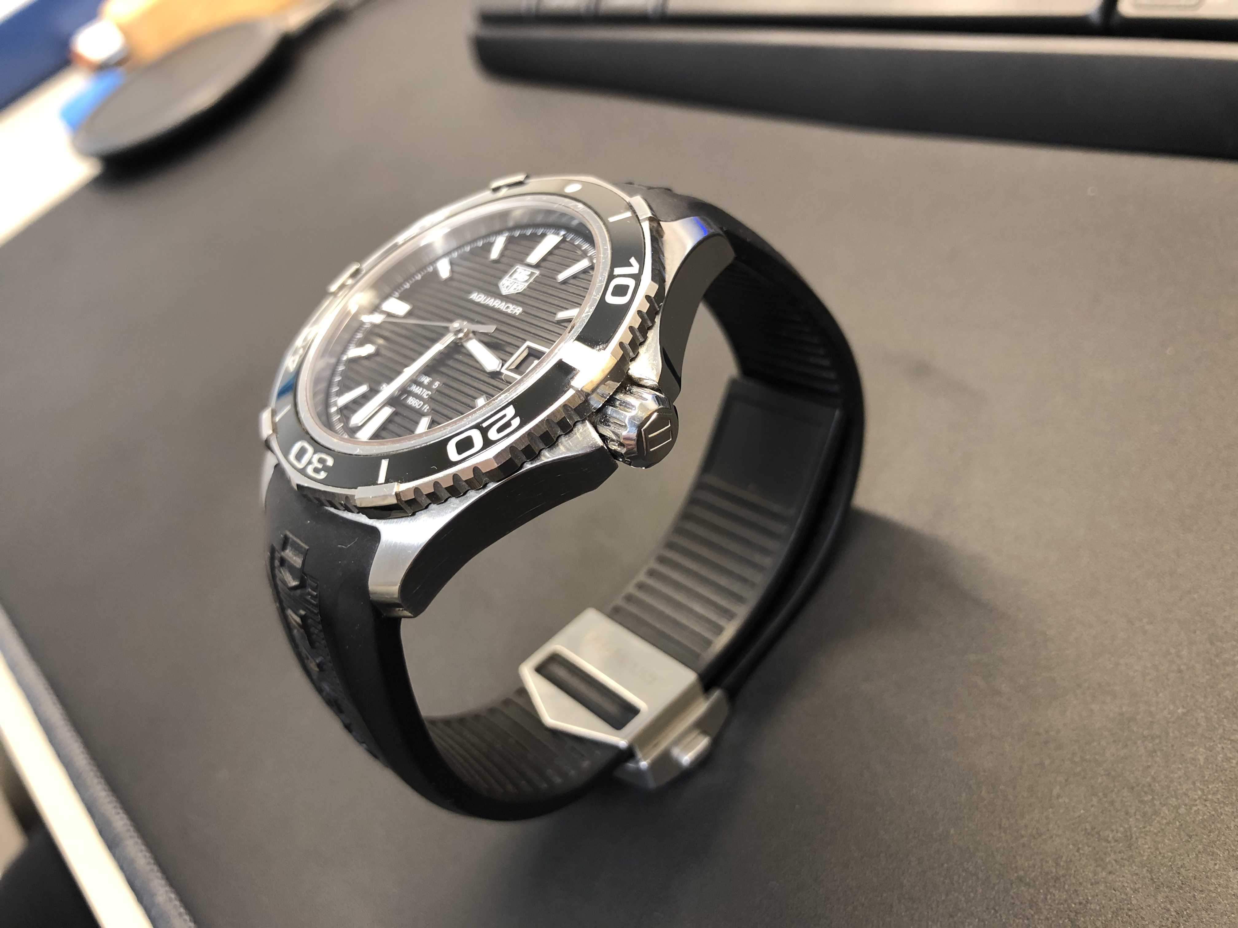 오늘 포스팅할 제품은 제가 7년간 정말 잘 사용하고 있는 시계입니다. 슈트를 입을 때나 운동복을 입을 때나 잘 어울려서 항상 데일리로 손목에 차게 되는 시계! 바로 태그호이어의 아쿠아레이서 500입니다. 필자는 2013년 결혼할 때 예물 시계로 장만하였는데요. 그 당시에는 백화점에서 약 300만 원 정도 했던 것 같습니다. 저는 신혼여행을 가면서 면세품으로 구입을 해서 약 260만 원 정도에 구매를 했던 기억이 납니다. 예물시계이긴 하지만 한 시계를 7년 동안 찬다는 게 쉬운 일이 아니고 그동안 러버 밴드로 한번 바꾼 것 외에 외관이 크게 질리지 않아 더욱 만족하면서 착용하고 있습니다. 그래서 이번 포스팅에서는 태그호이어 아쿠아레이서 500 모델의 외관 및 기능에 대해 자세히 살펴보고 장기 착용의 포인트가 무엇인지 알아보도록 하겠습니다.